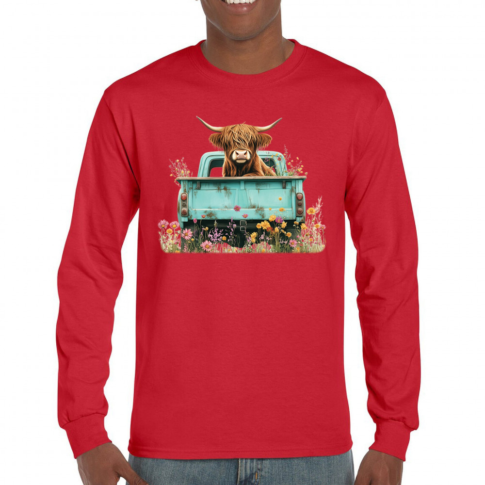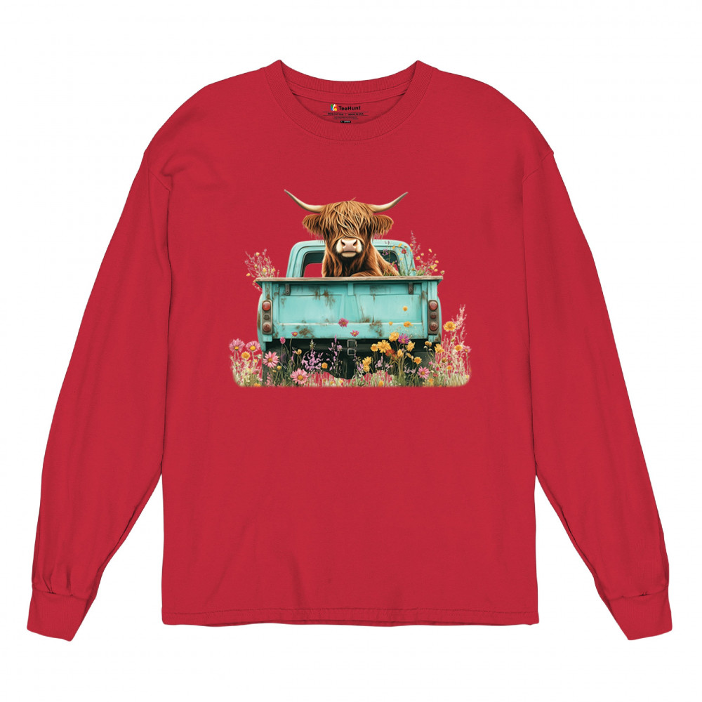 Celebrate rustic charm with this Highland Cow truck design, combining farmhouse floral truck art, boho ranch vibes, and country farmhouse shirt appeal. Perfect for cow lovers, barn style enthusiasts, and small town rural living. A vintage truck cow design that’s both cozy and stylish.