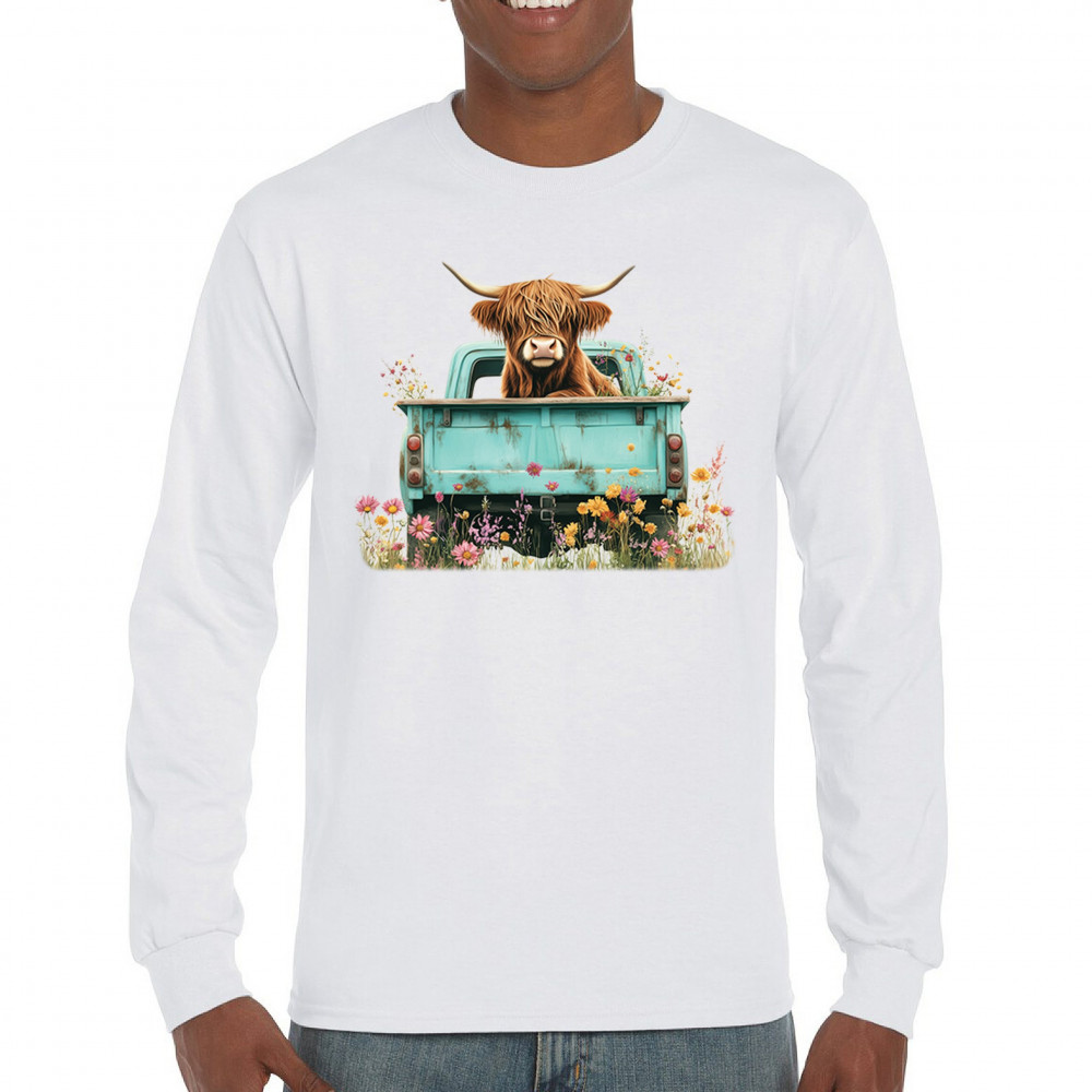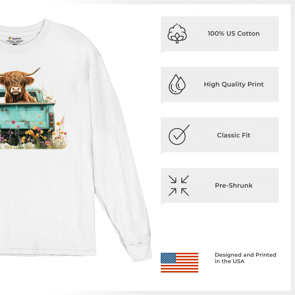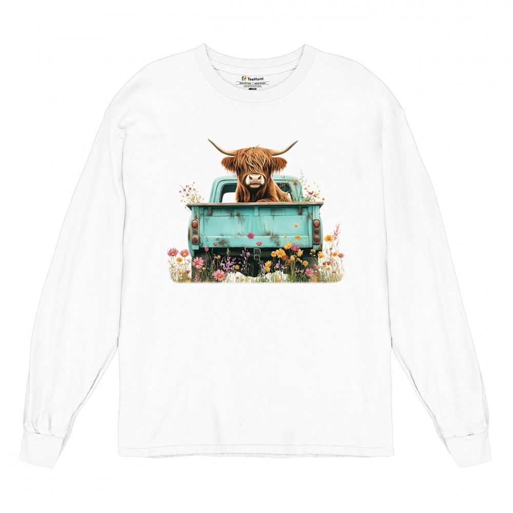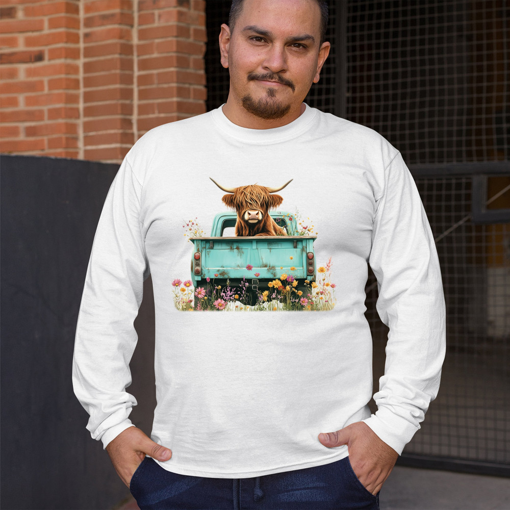 Celebrate rustic charm with this Highland Cow truck design, combining farmhouse floral truck art, boho ranch vibes, and country farmhouse shirt appeal. Perfect for cow lovers, barn style enthusiasts, and small town rural living. A vintage truck cow design that’s both cozy and stylish.