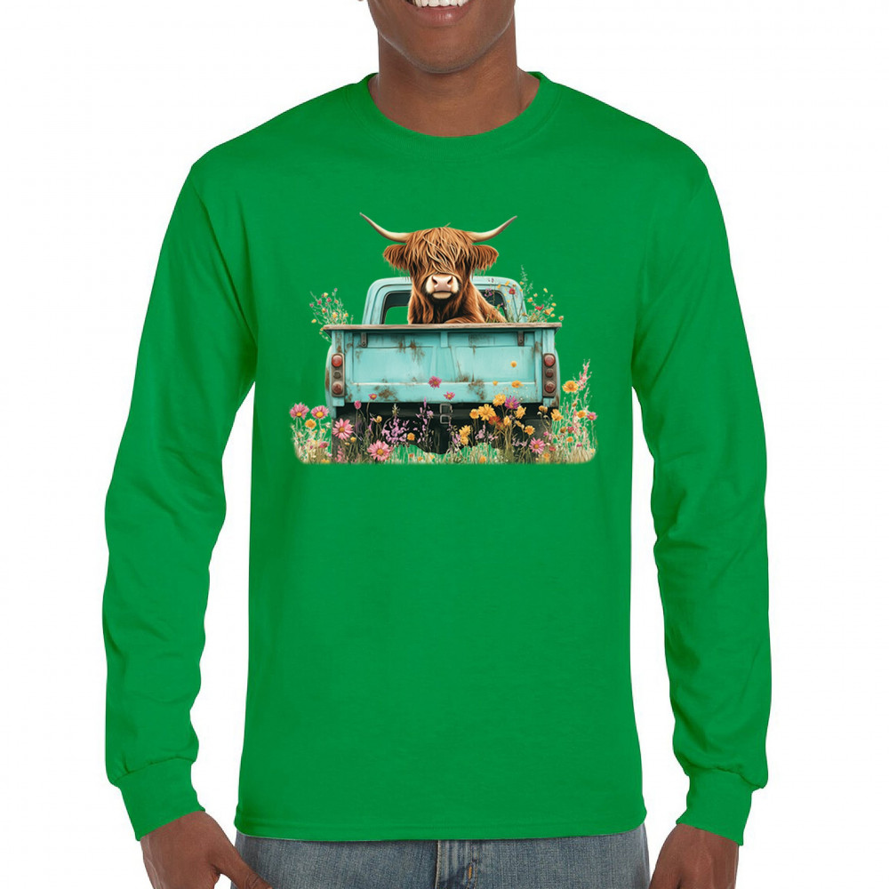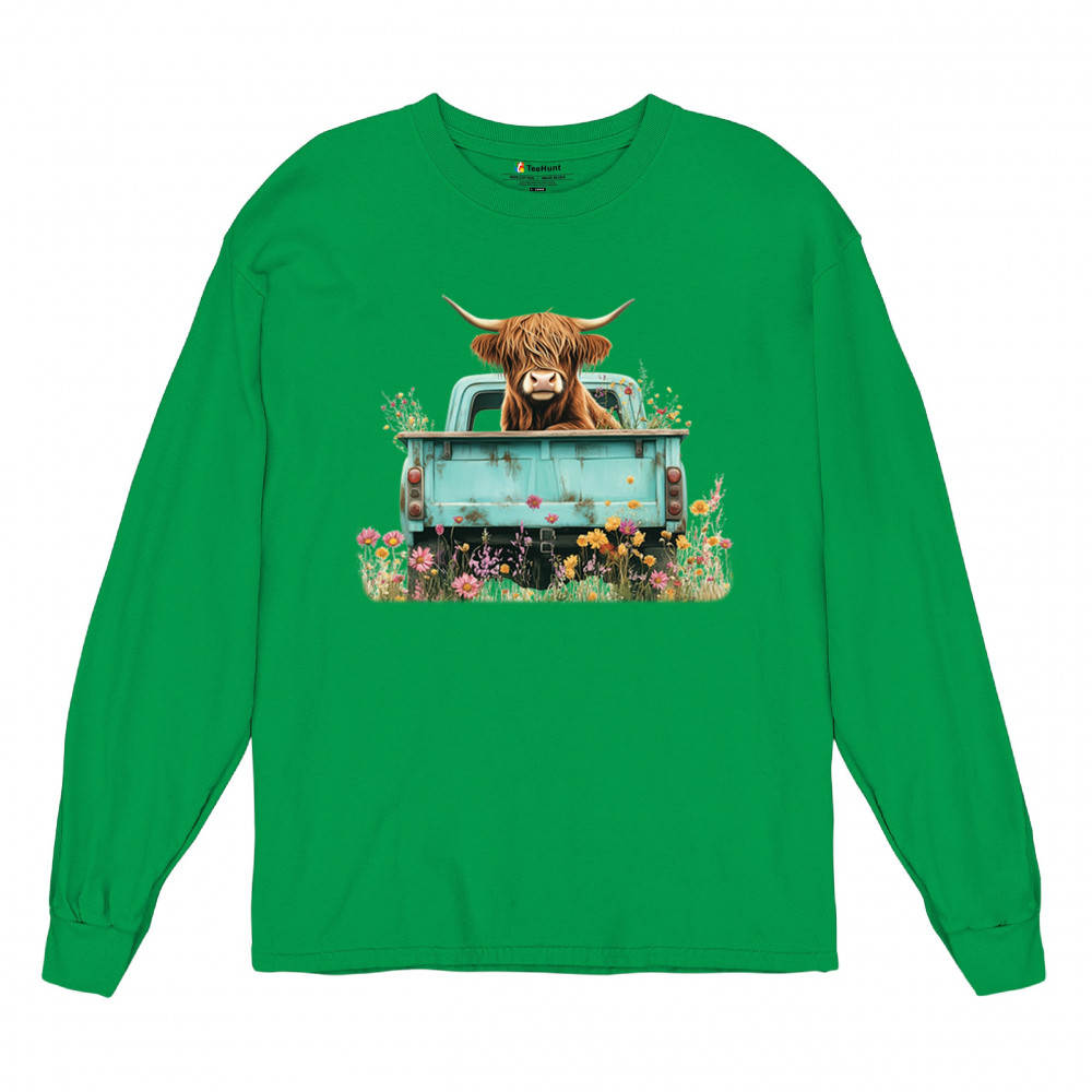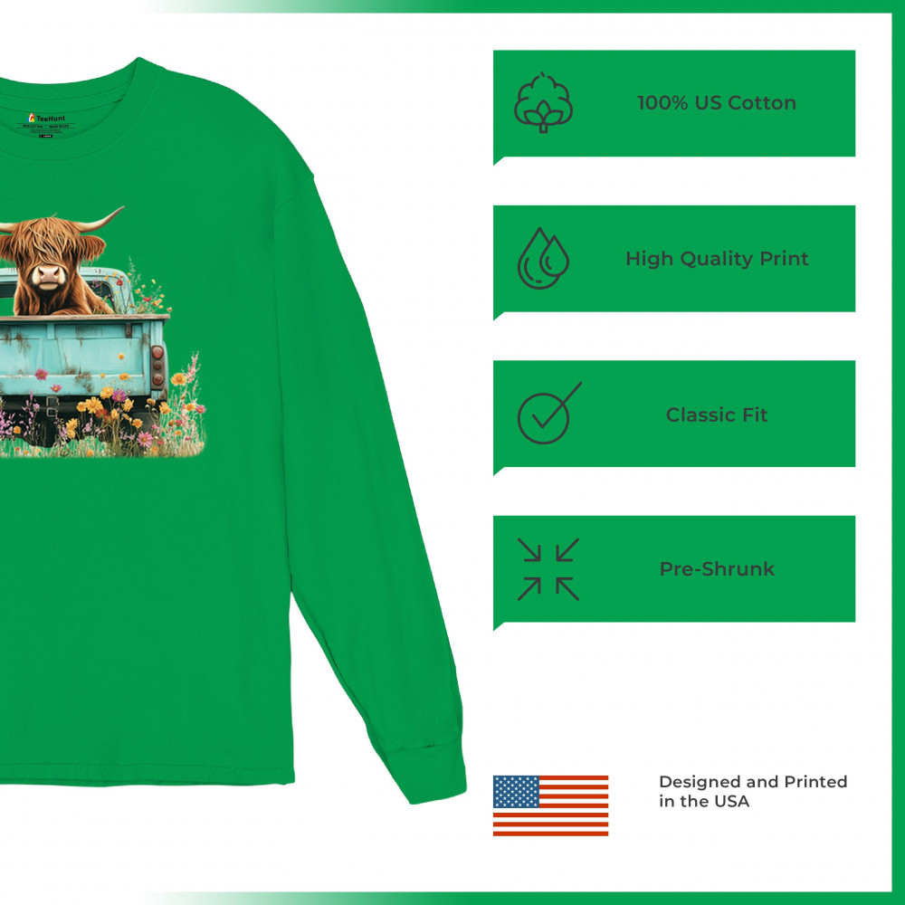 Celebrate rustic charm with this Highland Cow truck design, combining farmhouse floral truck art, boho ranch vibes, and country farmhouse shirt appeal. Perfect for cow lovers, barn style enthusiasts, and small town rural living. A vintage truck cow design that’s both cozy and stylish.