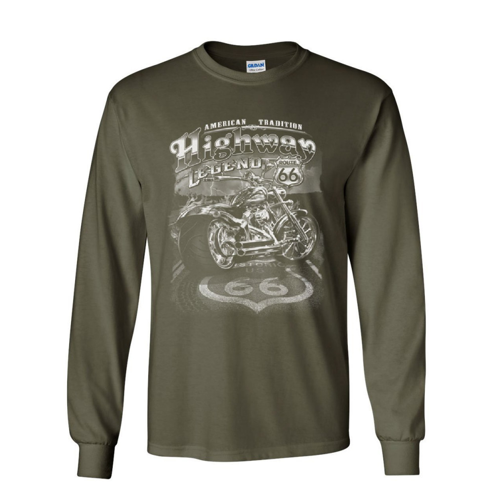 HIGHWAY LEGEND ROUTE 66 long sleeve t-shirt biker american tradition chopper tee military green