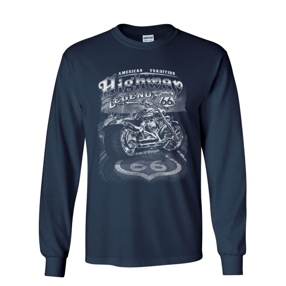 HIGHWAY LEGEND ROUTE 66 long sleeve t-shirt biker american tradition chopper tee navy blue