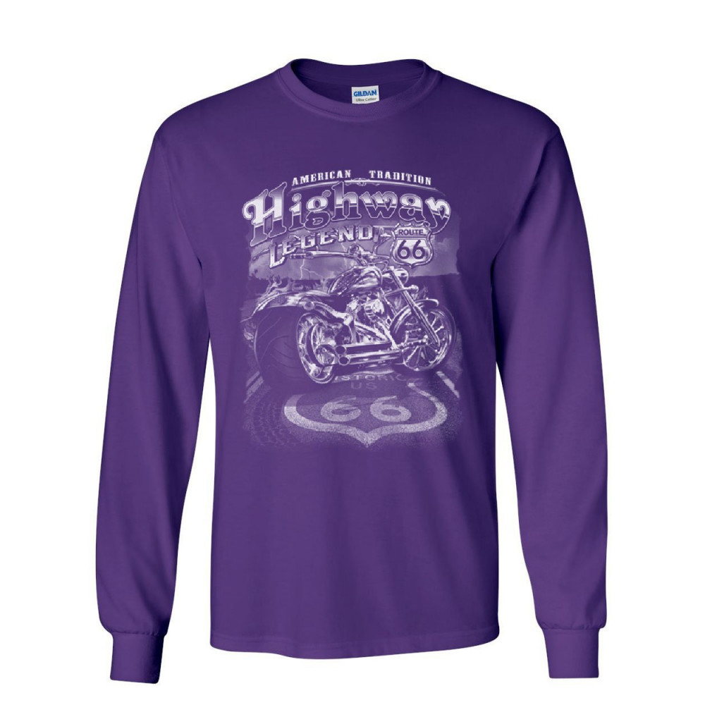 HIGHWAY LEGEND ROUTE 66 long sleeve t-shirt biker american tradition chopper tee purple