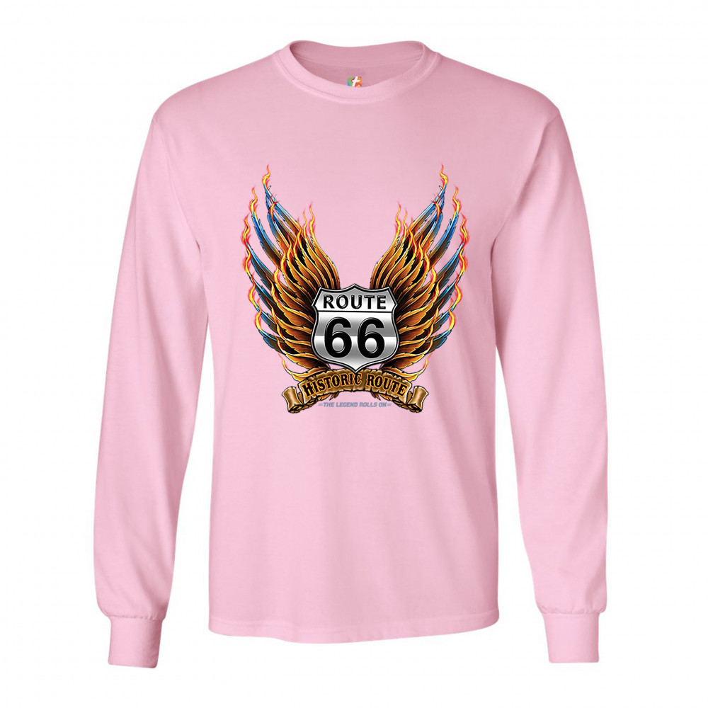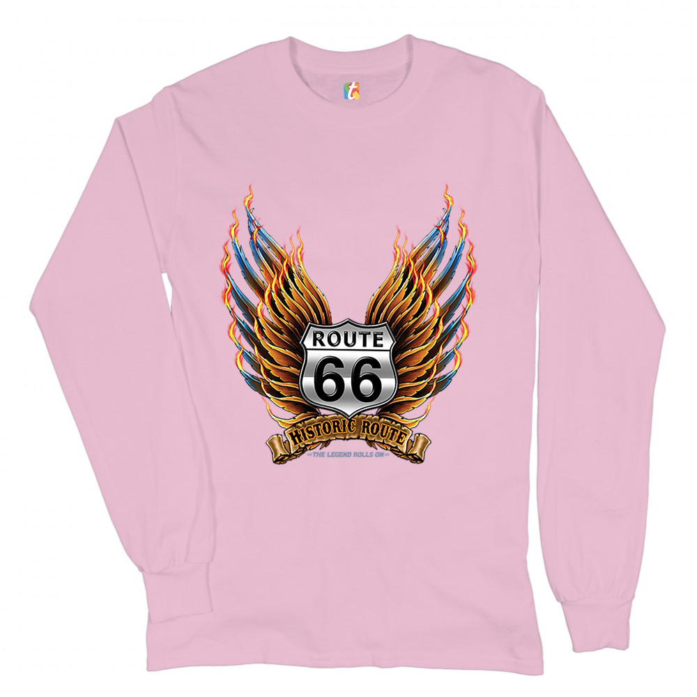 HISTORIC ROUTE 66 long sleeve t-shirt the legend rolls on the mother road pink