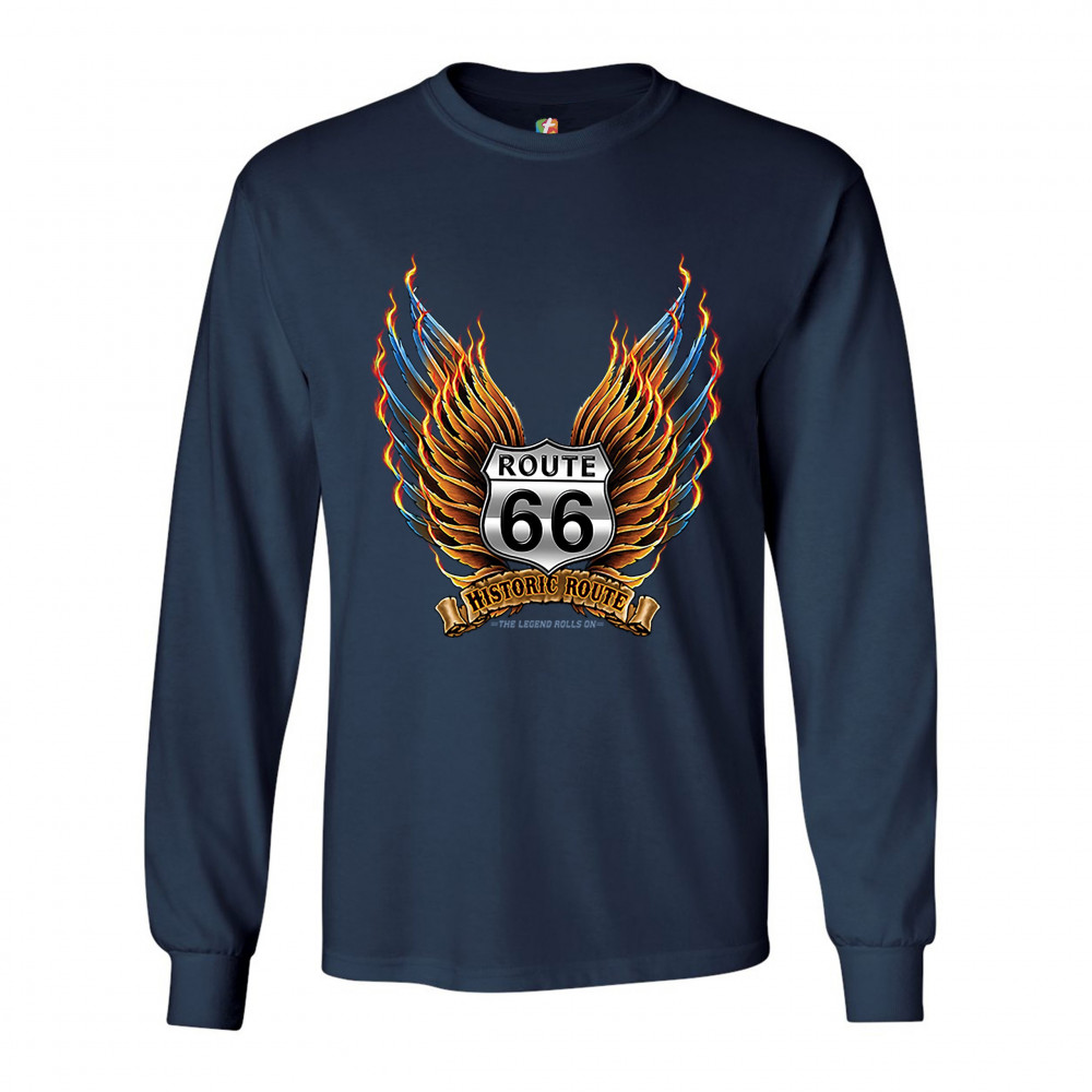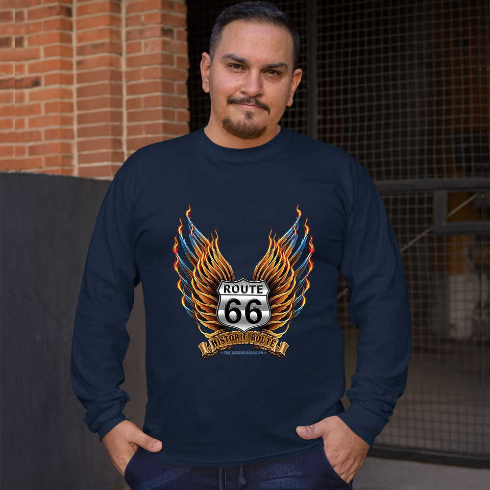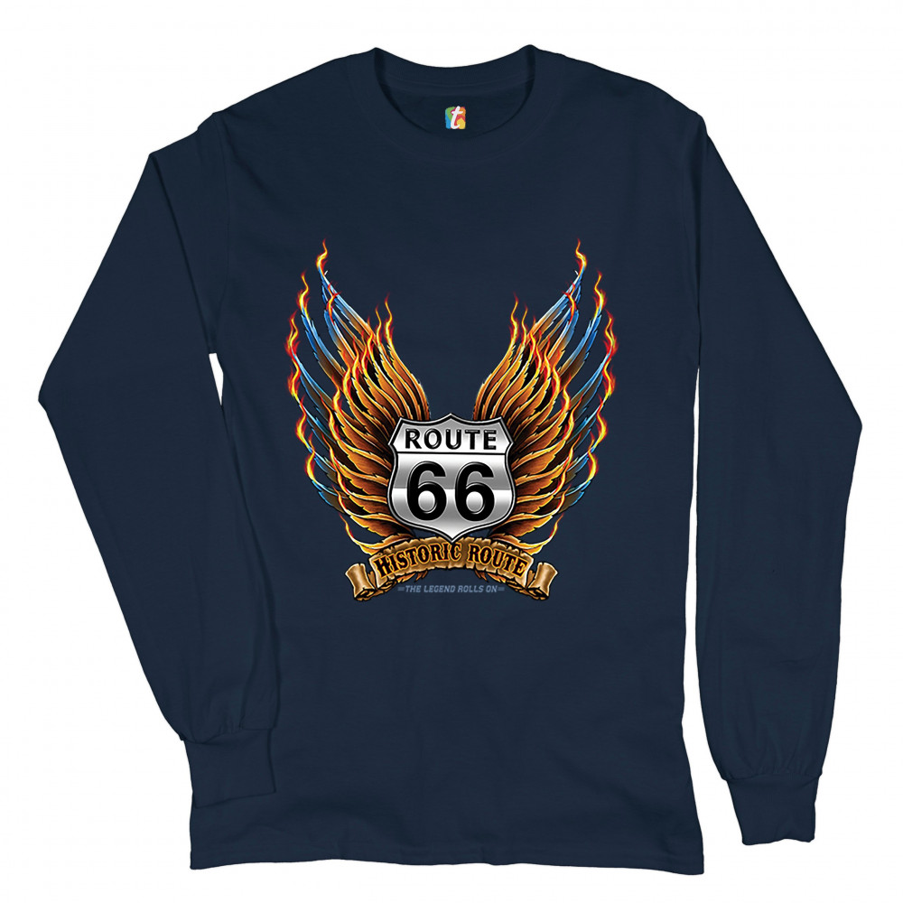 HISTORIC ROUTE 66 long sleeve t-shirt the legend rolls on the mother road navy blue