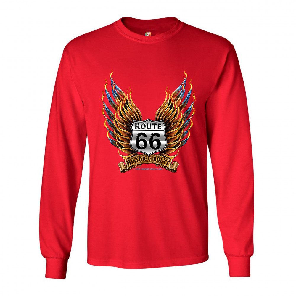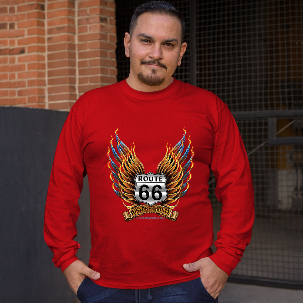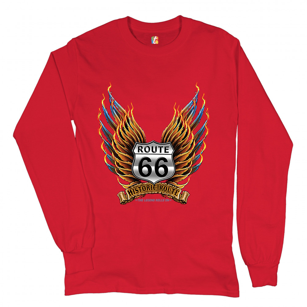 HISTORIC ROUTE 66 long sleeve t-shirt the legend rolls on the mother road red