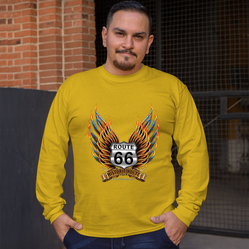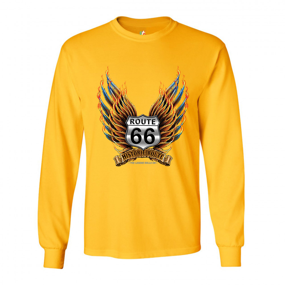 HISTORIC ROUTE 66 long sleeve t-shirt the legend rolls on the mother road yellow