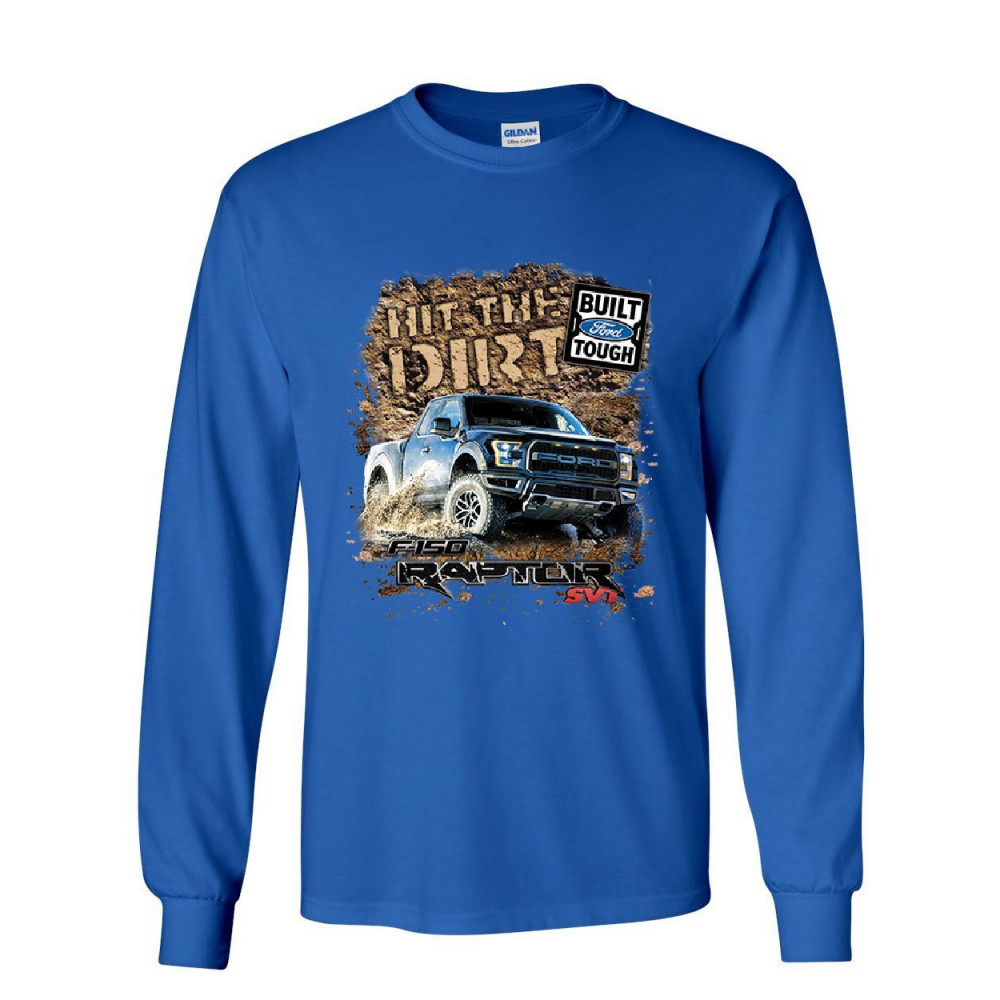 HIT THE DIRT built ford tough long sleeve t-shirt f-150 raptor pickup truck tee royal blue