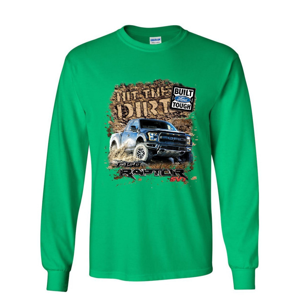 HIT THE DIRT built ford tough long sleeve t-shirt f-150 raptor pickup truck tee green