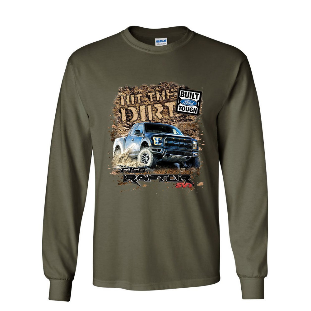 HIT THE DIRT built ford tough long sleeve t-shirt f-150 raptor pickup truck tee military green