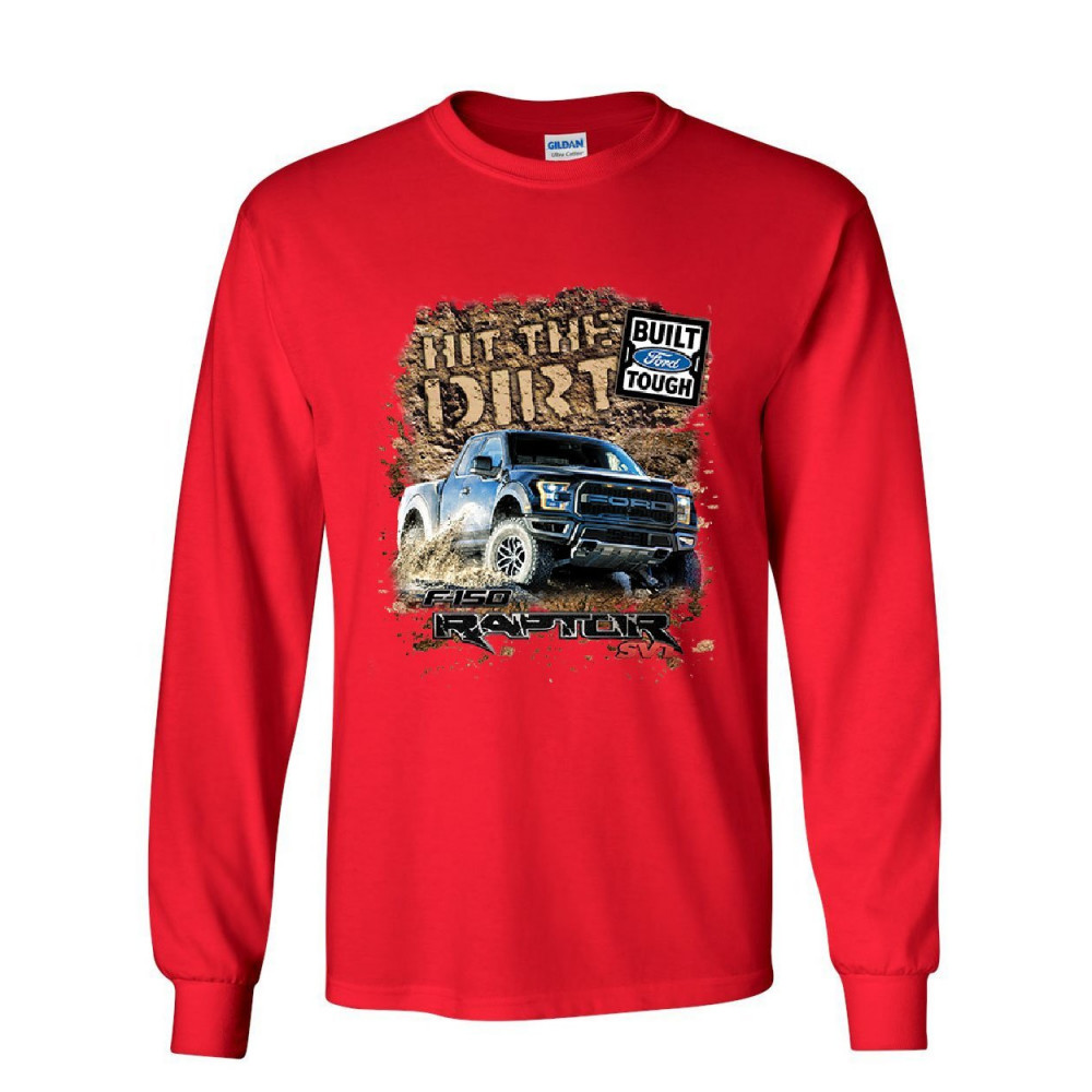 HIT THE DIRT built ford tough long sleeve t-shirt f-150 raptor pickup truck tee red