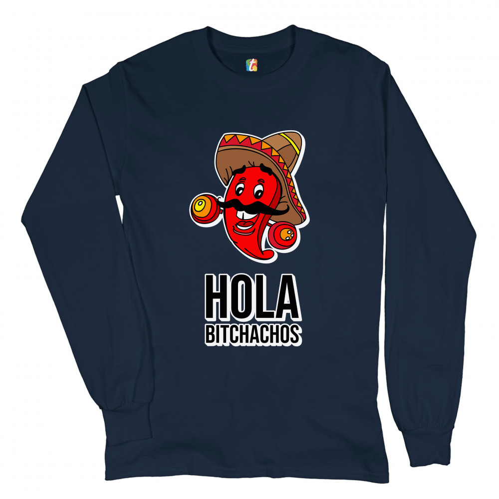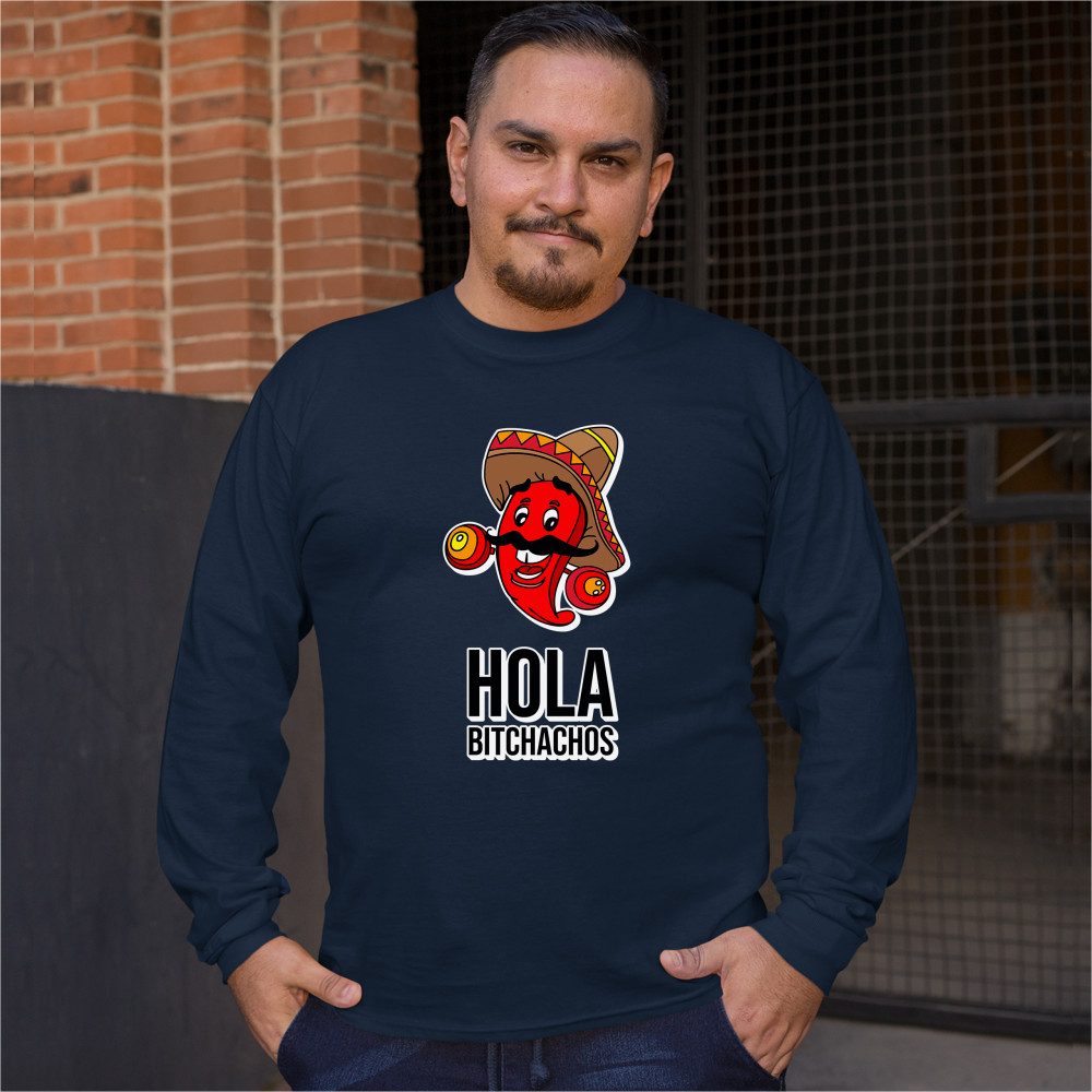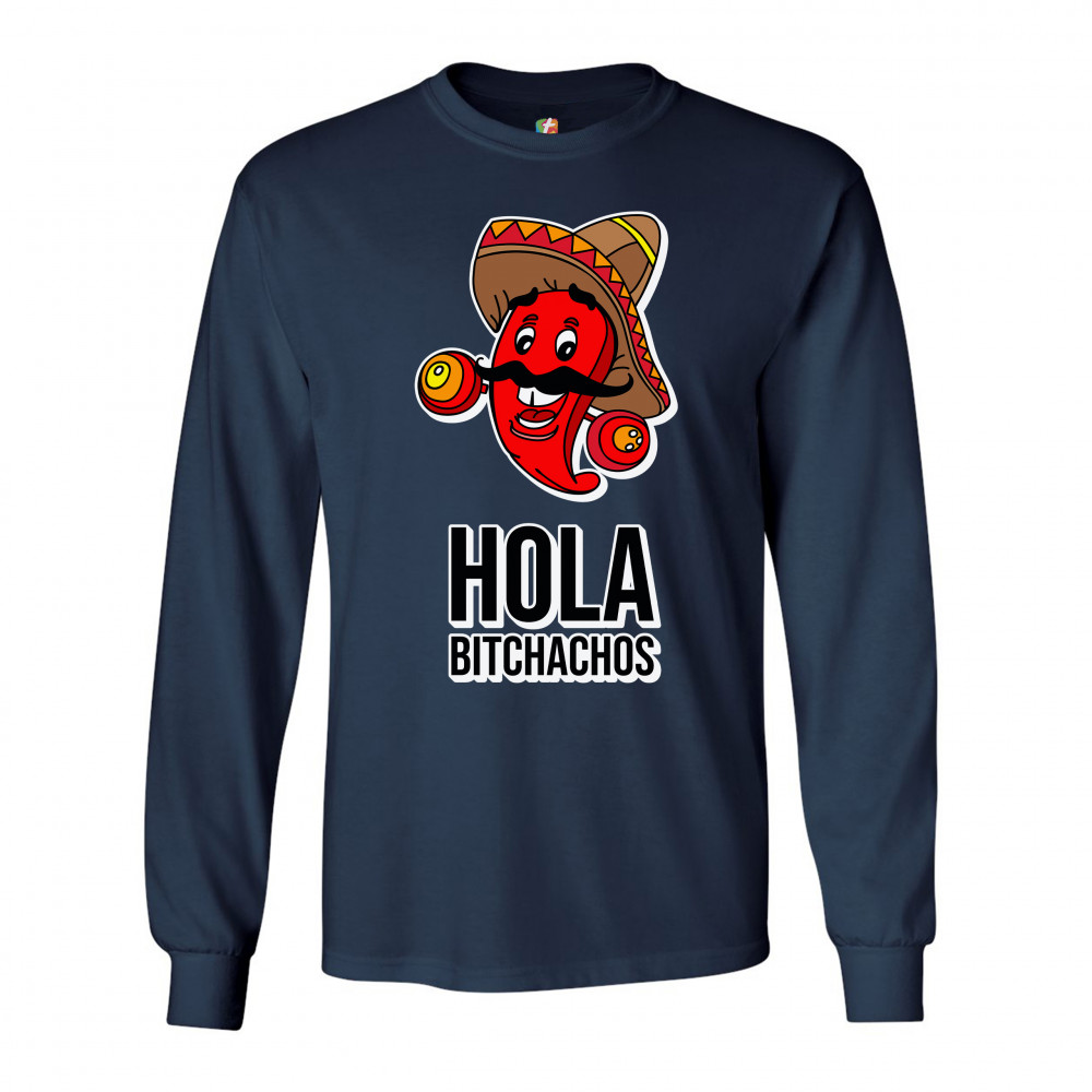 HOLA BITCHACHOS long sleeve t-shirt funny mexican chili pepper cinco de mayo navy blue