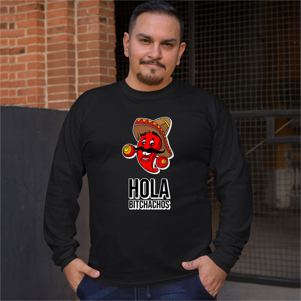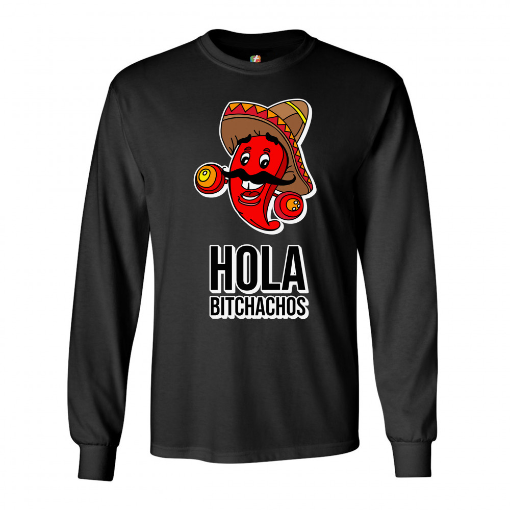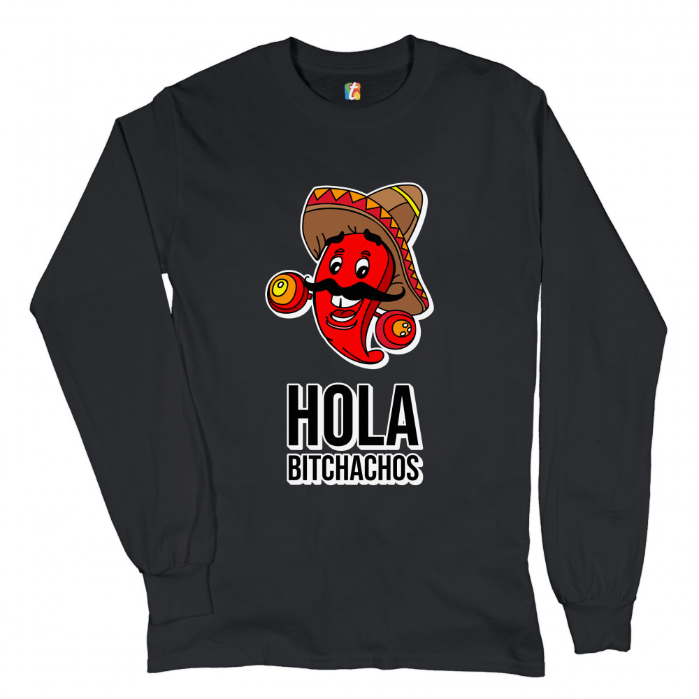 HOLA BITCHACHOS long sleeve t-shirt funny mexican chili pepper cinco de mayo black