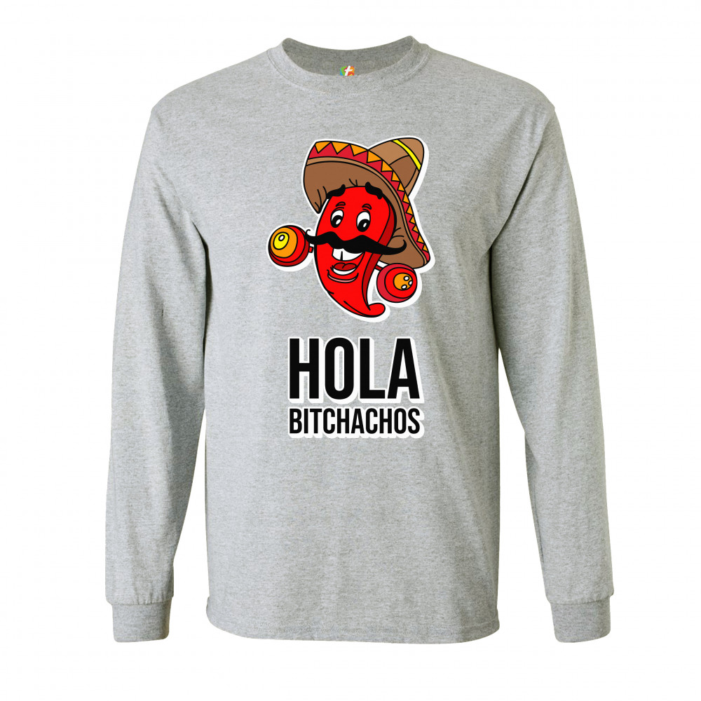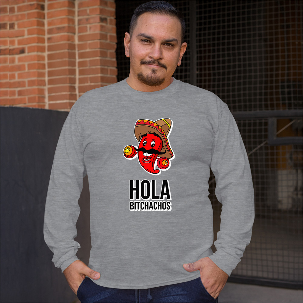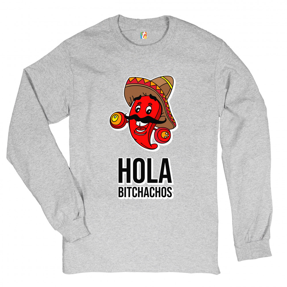 HOLA BITCHACHOS long sleeve t-shirt funny mexican chili pepper cinco de mayo gray