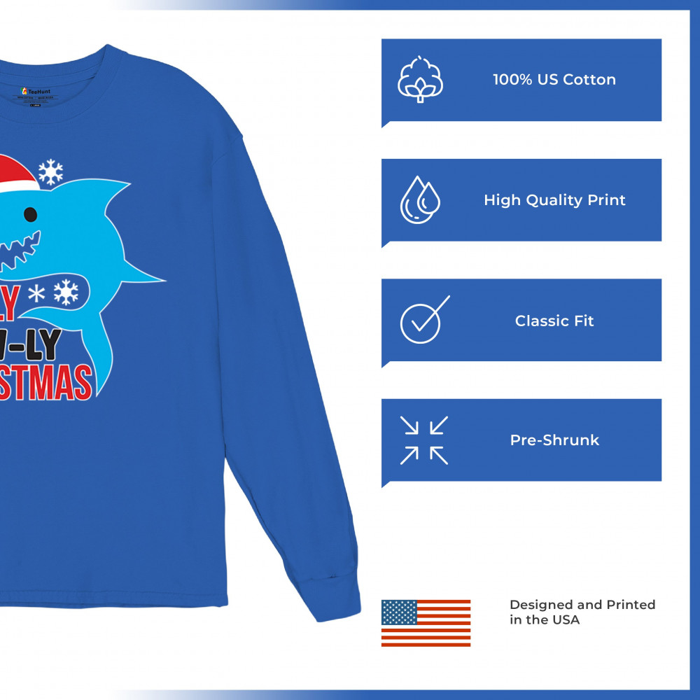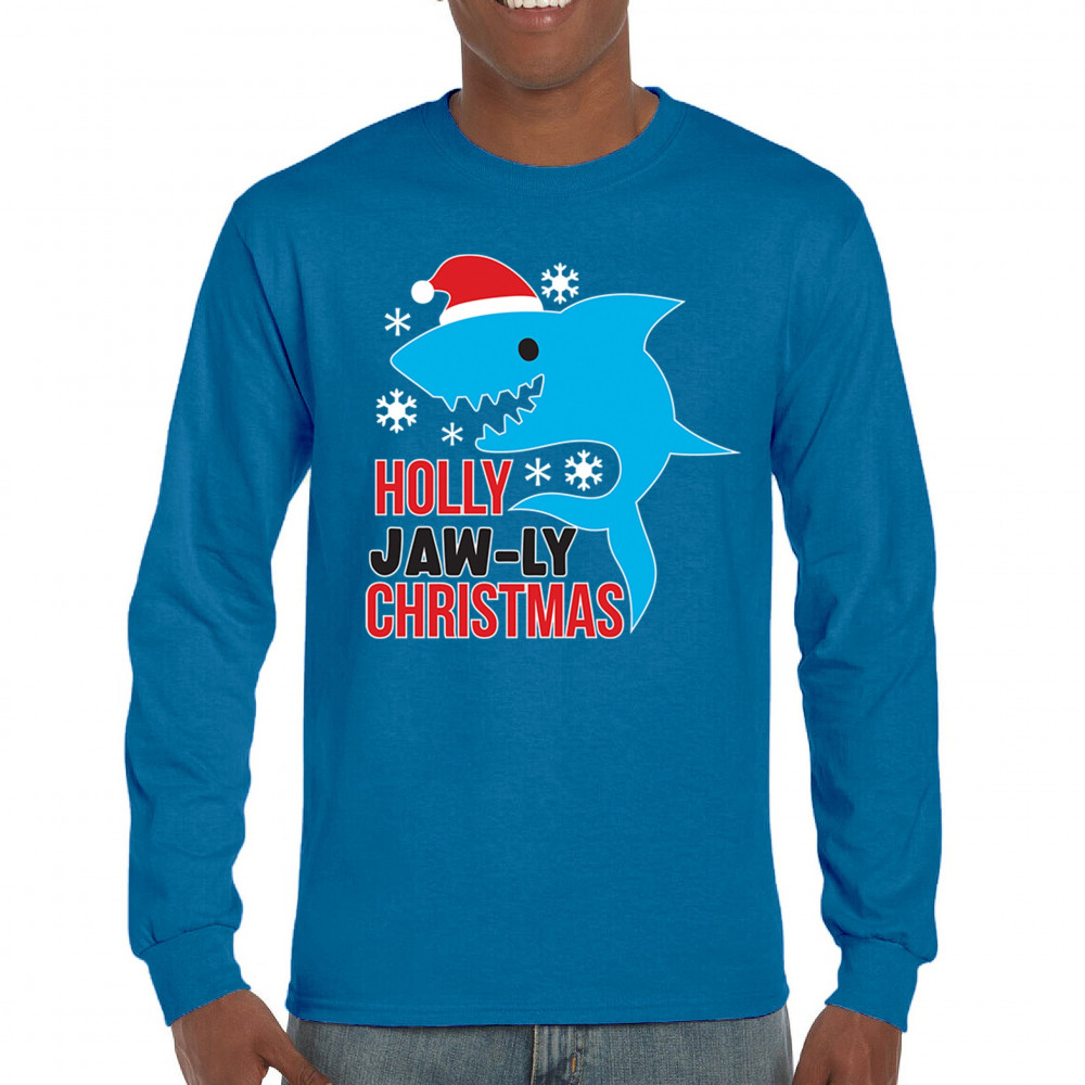 A fun Holly Jaw-ly Christmas design featuring a cheerful shark in a Santa hat with bright snowflake accents. Ideal for beach lovers, ocean fans, pun humor enthusiasts, Christmas parties, festive gatherings, white elephant events, and lighthearted winter celebrations. Brings a playful coastal vibe to holiday season outfits and gifts.