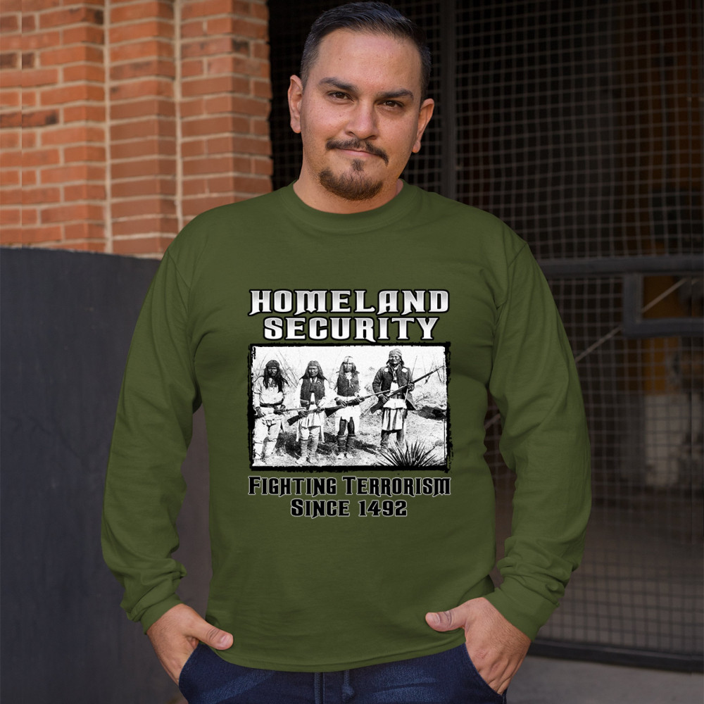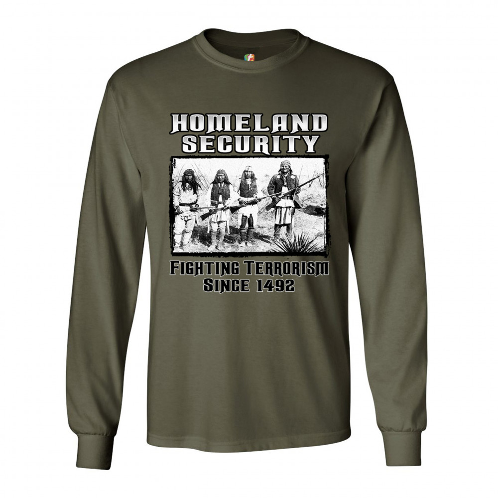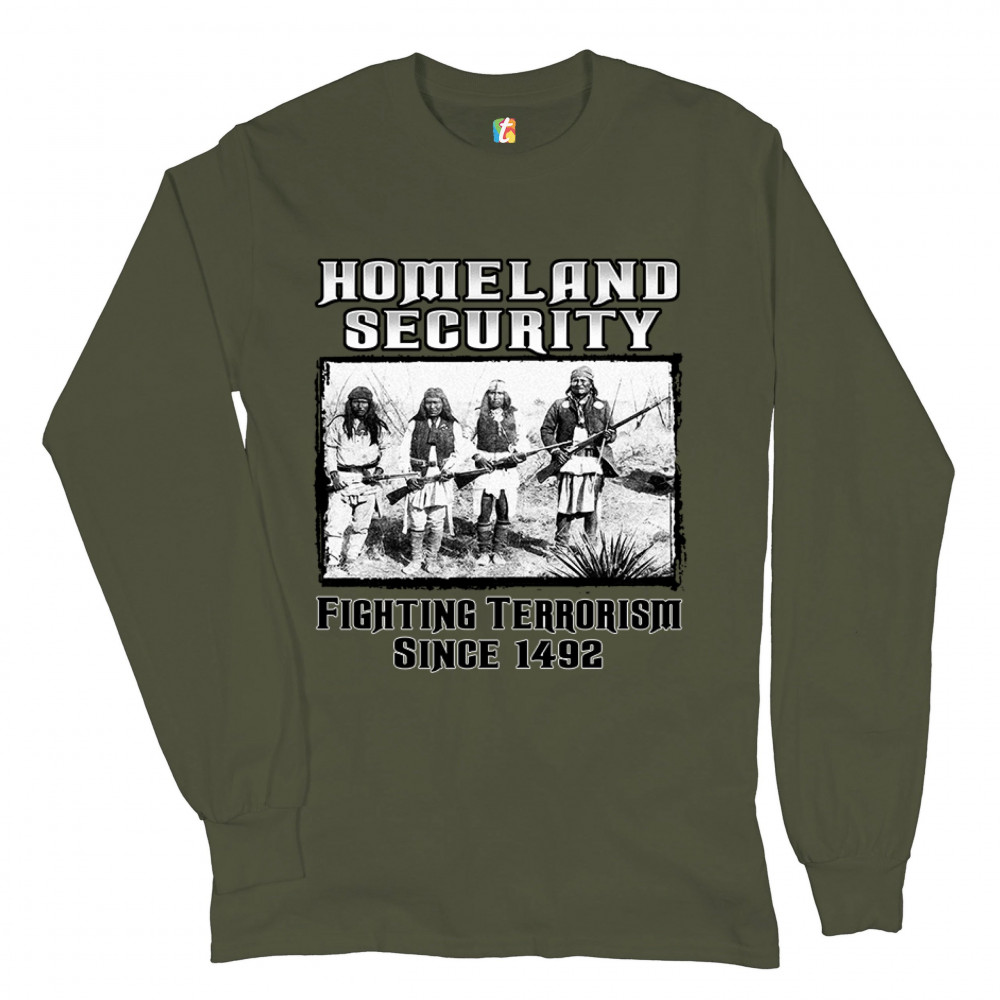 HOMELAND SECURITY long sleeve t-shirt native american indigenous patriotic military green