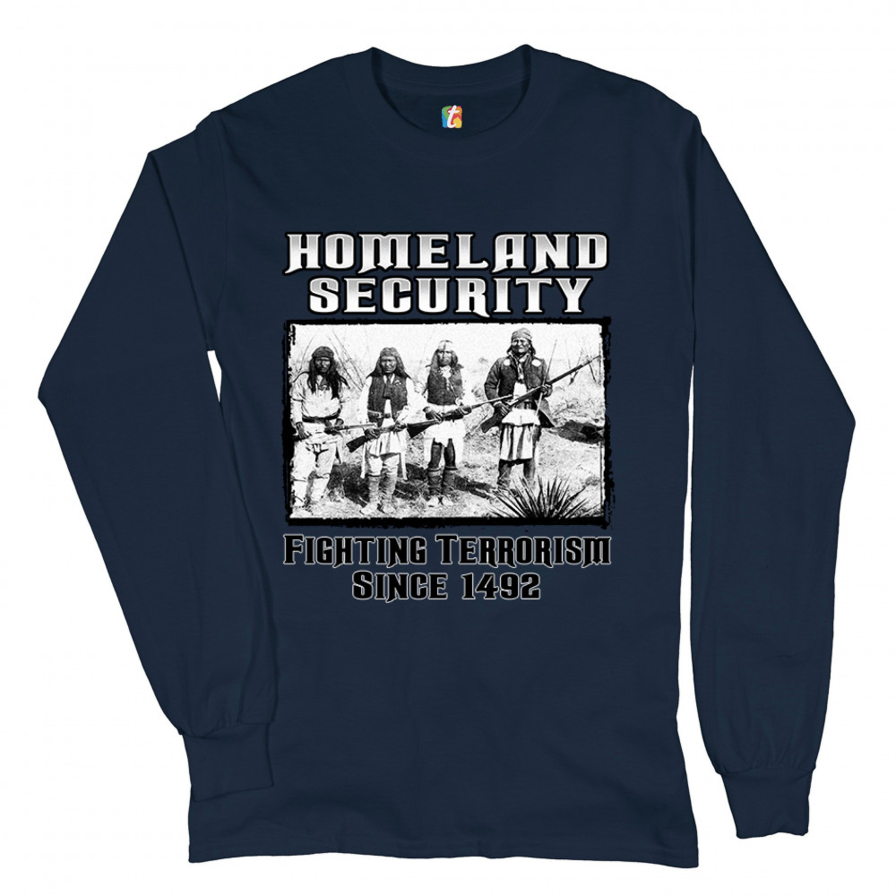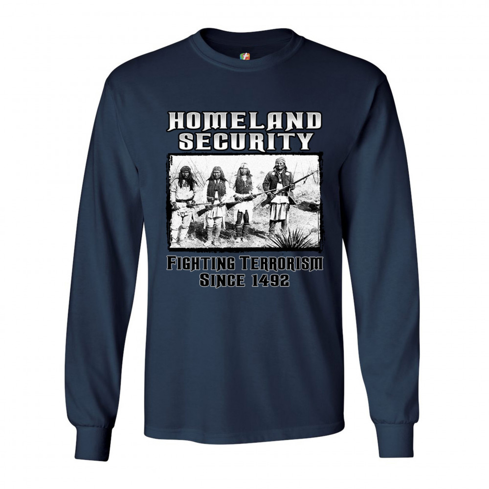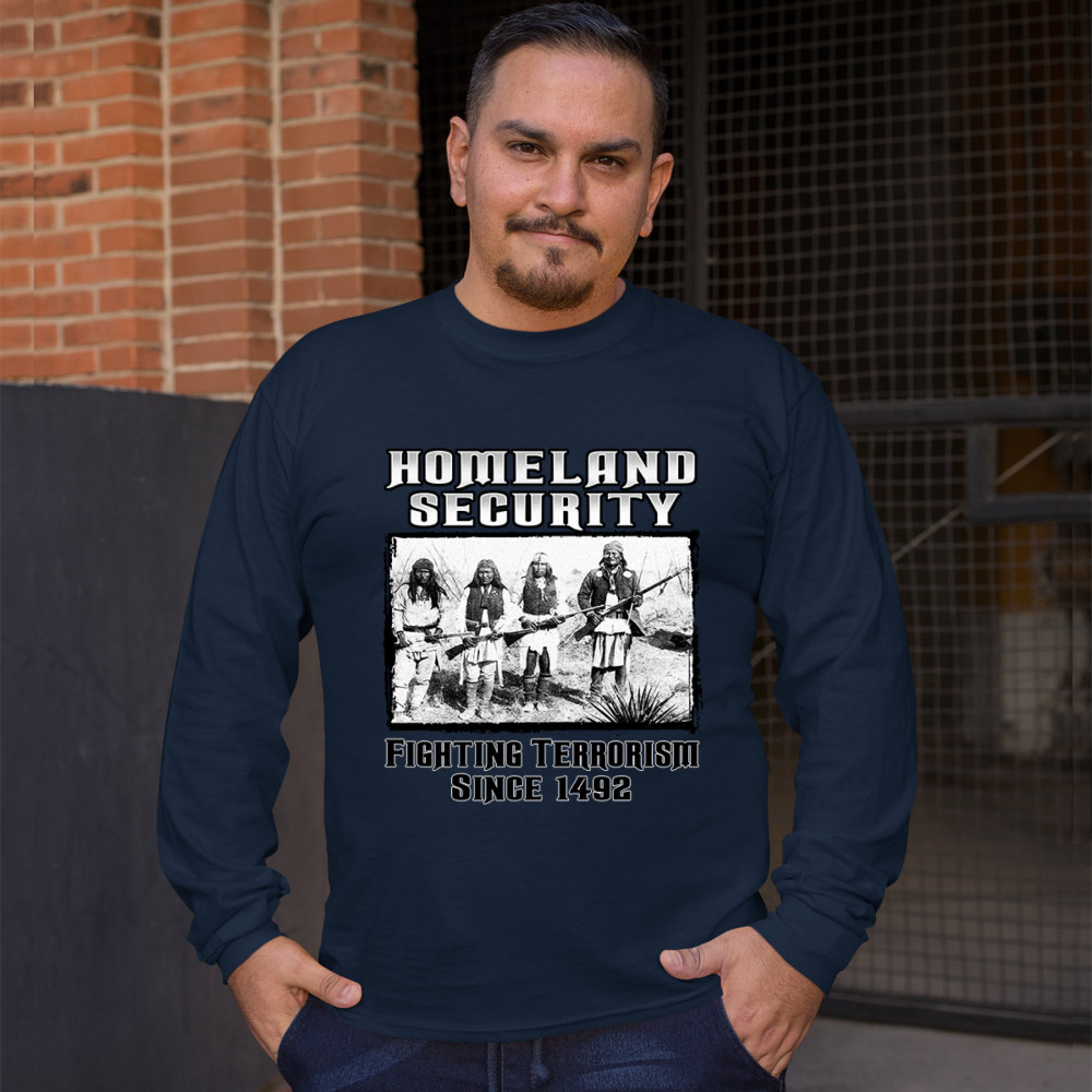 HOMELAND SECURITY long sleeve t-shirt native american indigenous patriotic navy blue