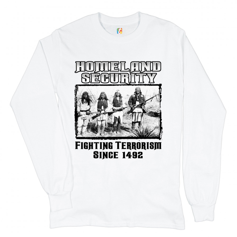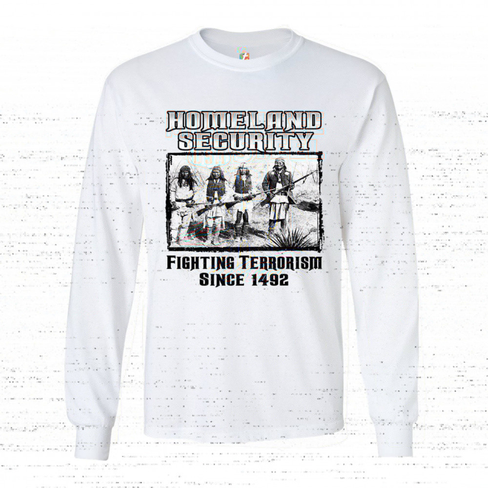 HOMELAND SECURITY long sleeve t-shirt native american indigenous patriotic white