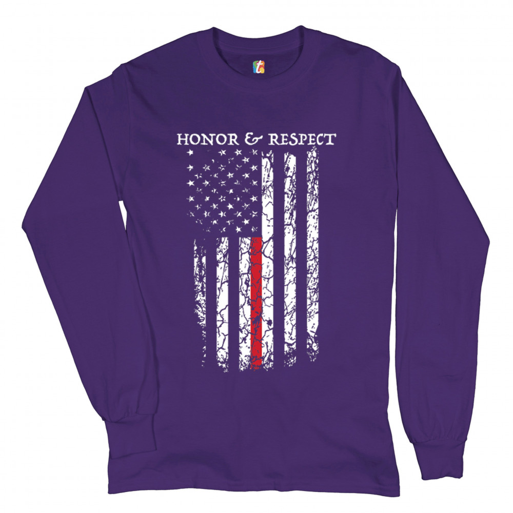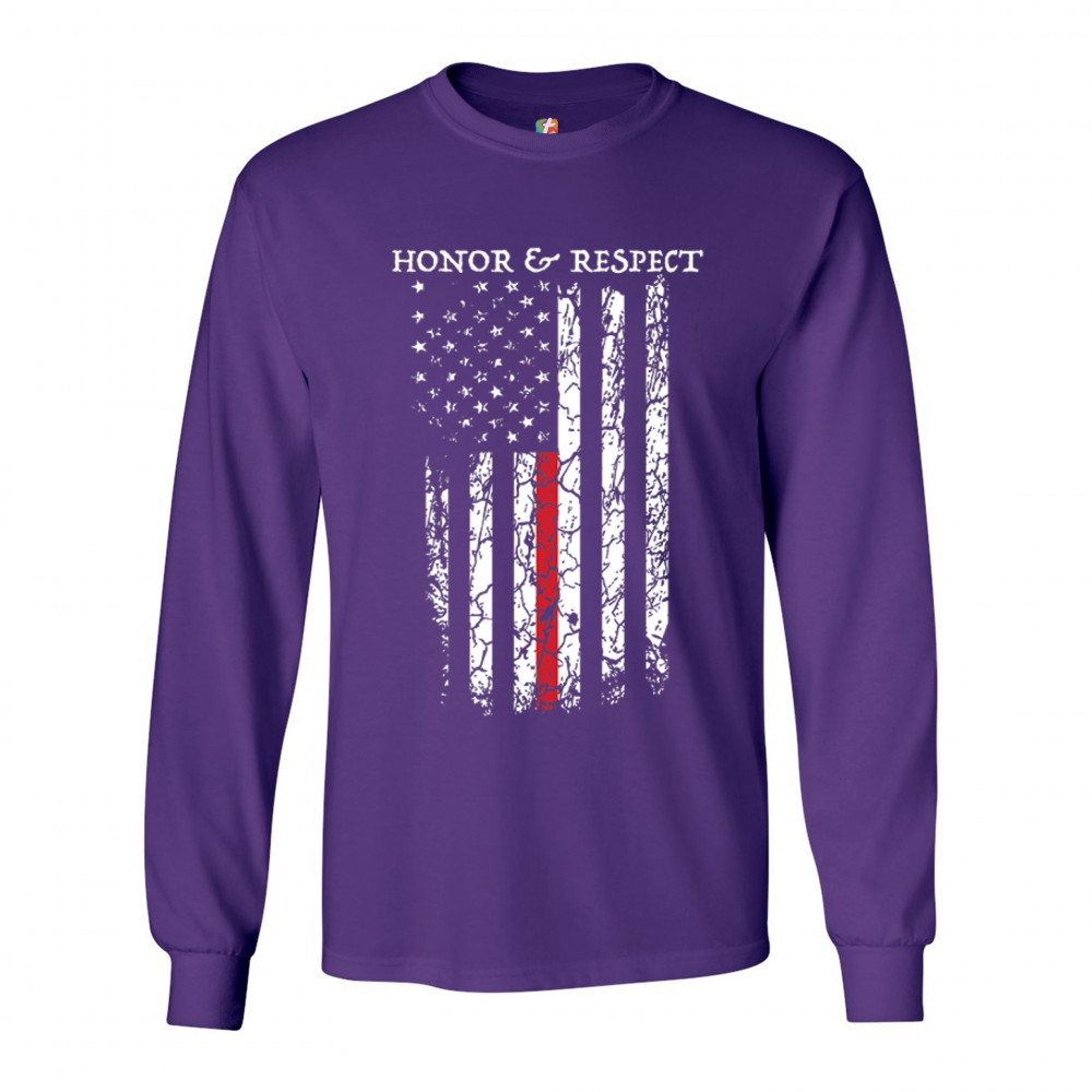 HONOR & RESPECT THIN RED LINE long sleeve t-shirt firefighter american flag purple