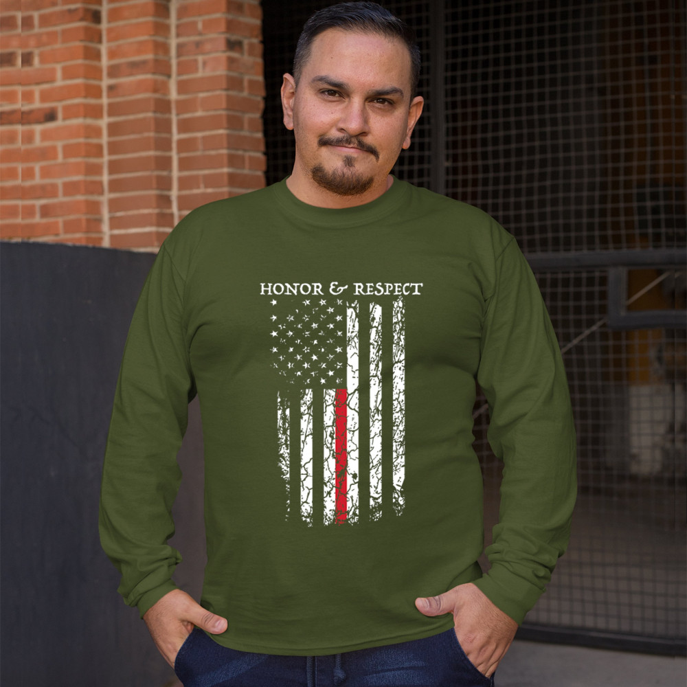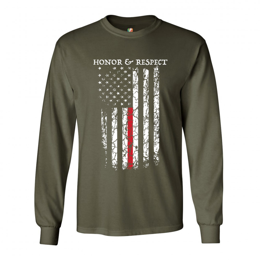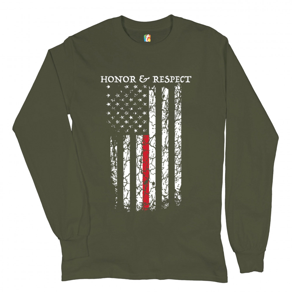 HONOR & RESPECT THIN RED LINE long sleeve t-shirt firefighter american flag military green
