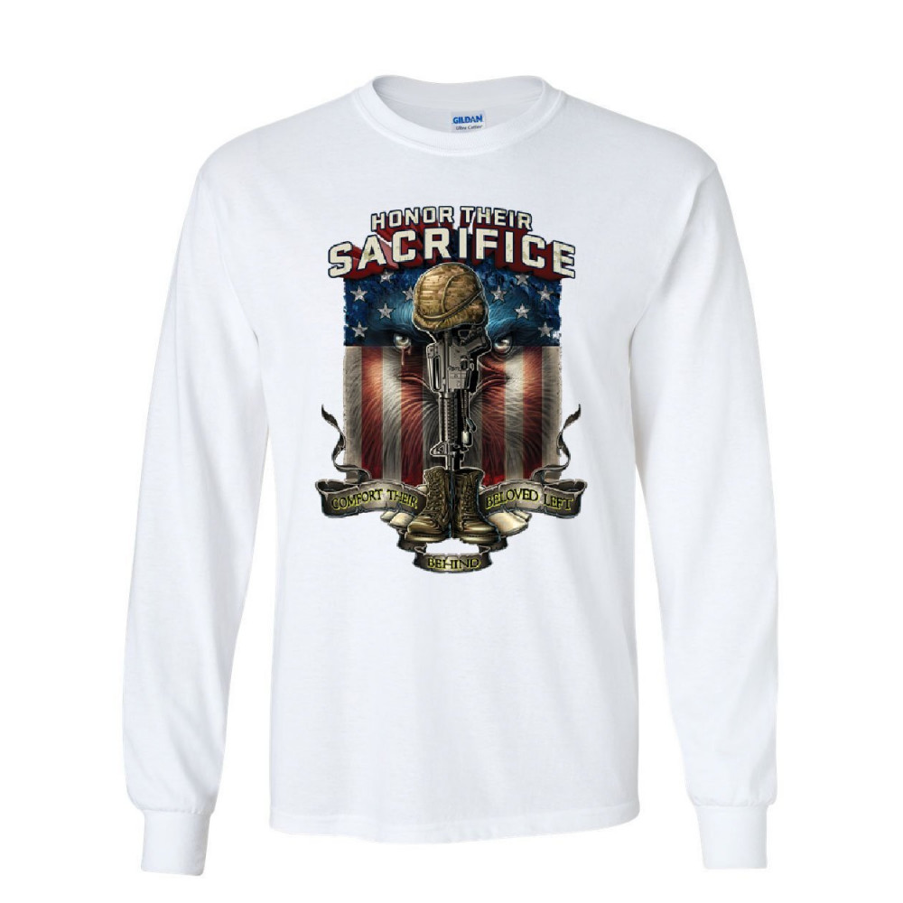 HONOR THEIR SACRIFICE long sleeve t-shirt pow mia military remembrance army tee white