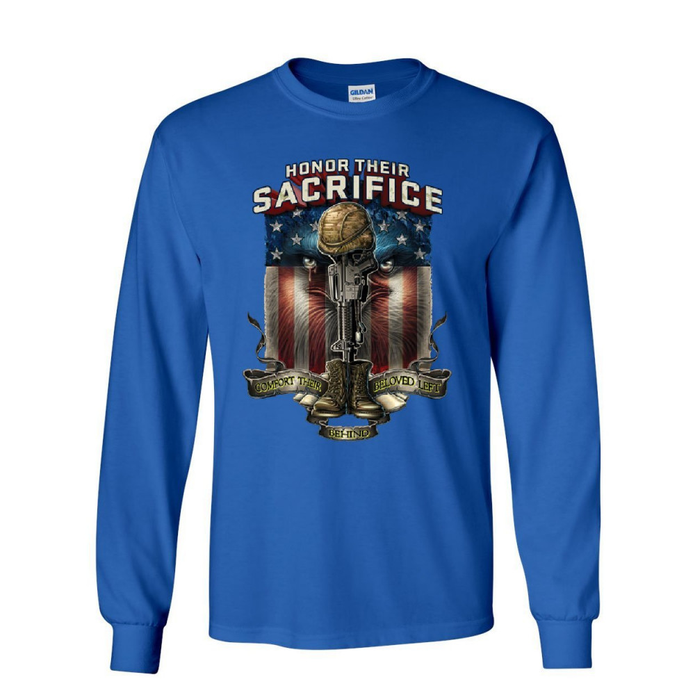 HONOR THEIR SACRIFICE long sleeve t-shirt pow mia military remembrance army tee royal blue