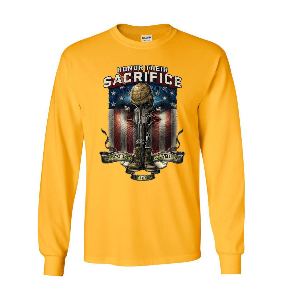 HONOR THEIR SACRIFICE long sleeve t-shirt pow mia military remembrance army tee yellow