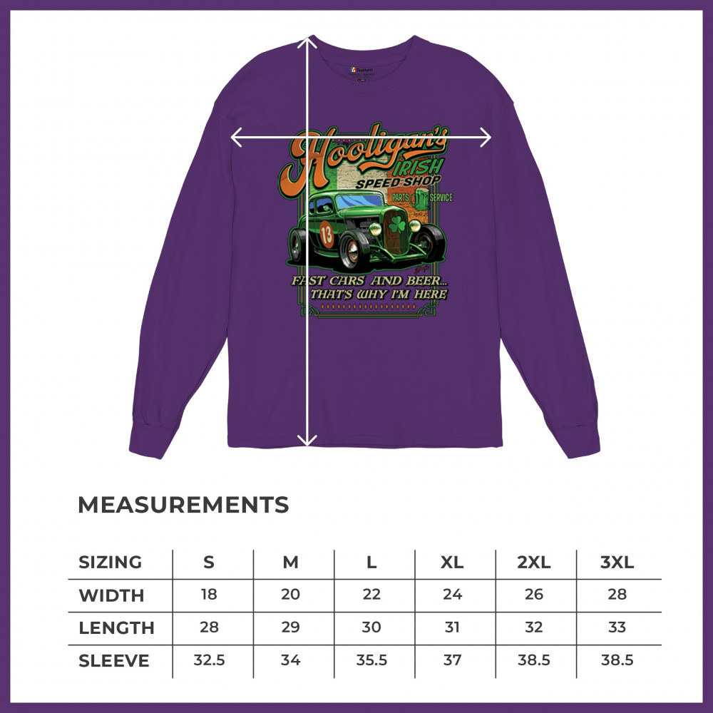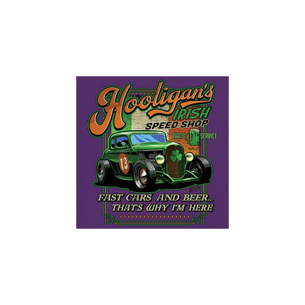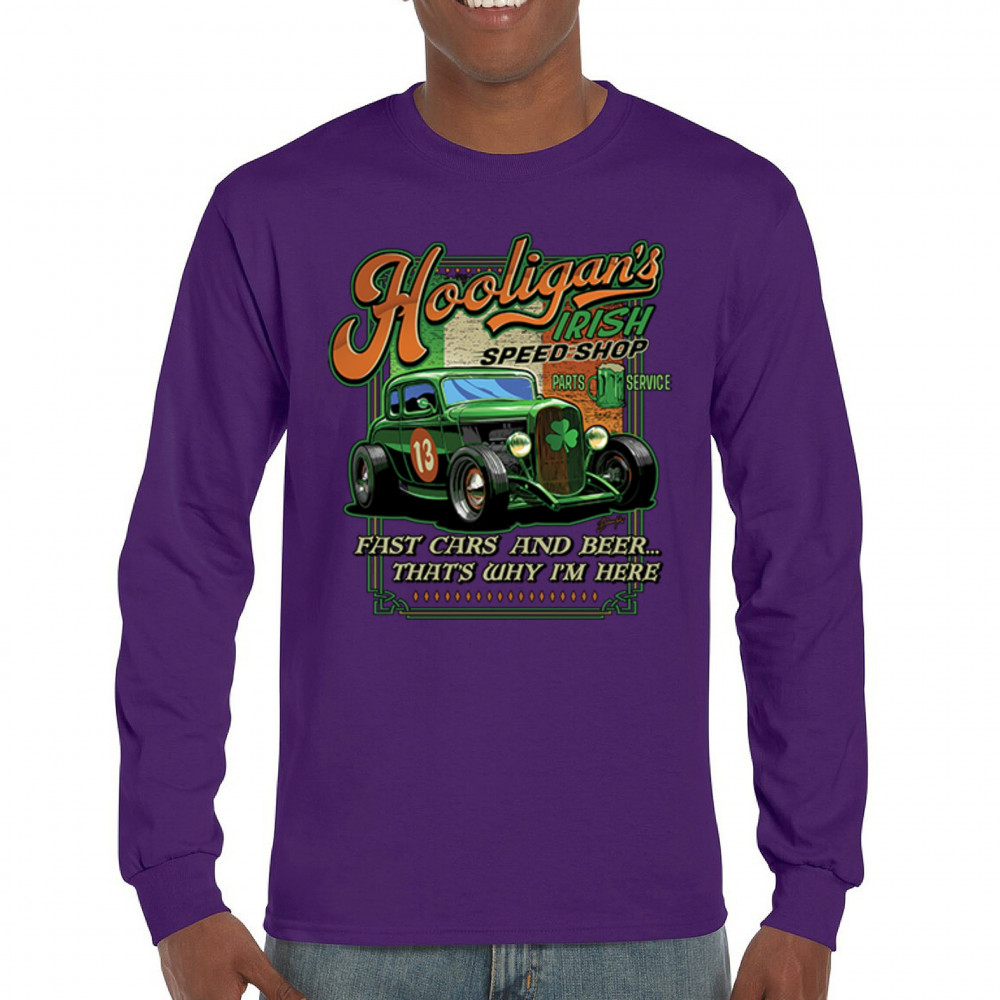 HOOLIGAN'S IRISH SPEED SHOP hooligans irish speed shop st patricks day long sleeve t-shirt hot rod shamrock purple
