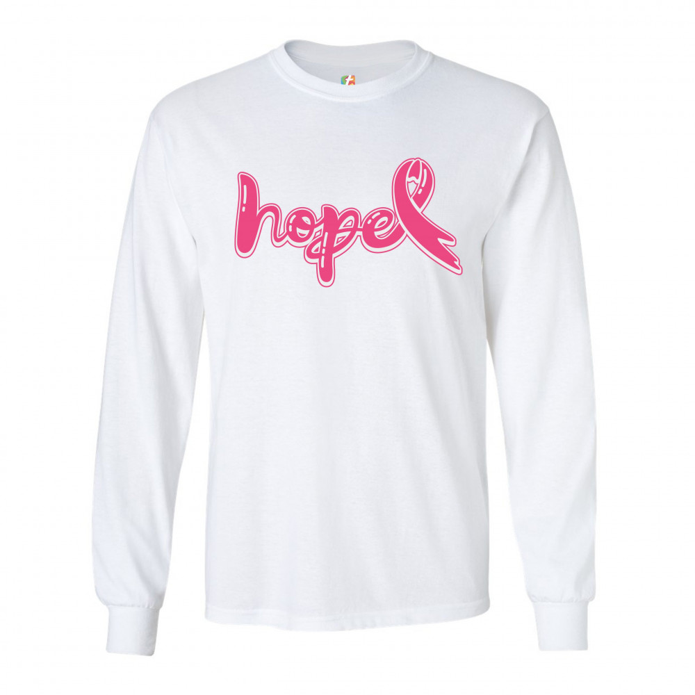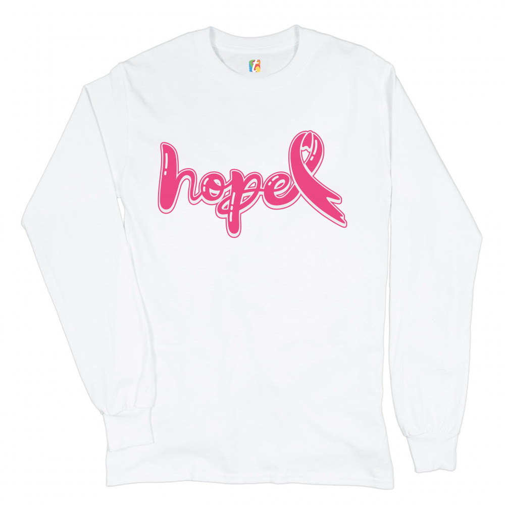 HOPE PINK RIBBON long sleeve t-shirt breast cancer awareness month white