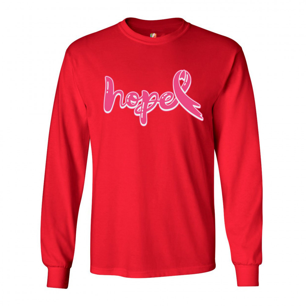 HOPE PINK RIBBON long sleeve t-shirt breast cancer awareness month red