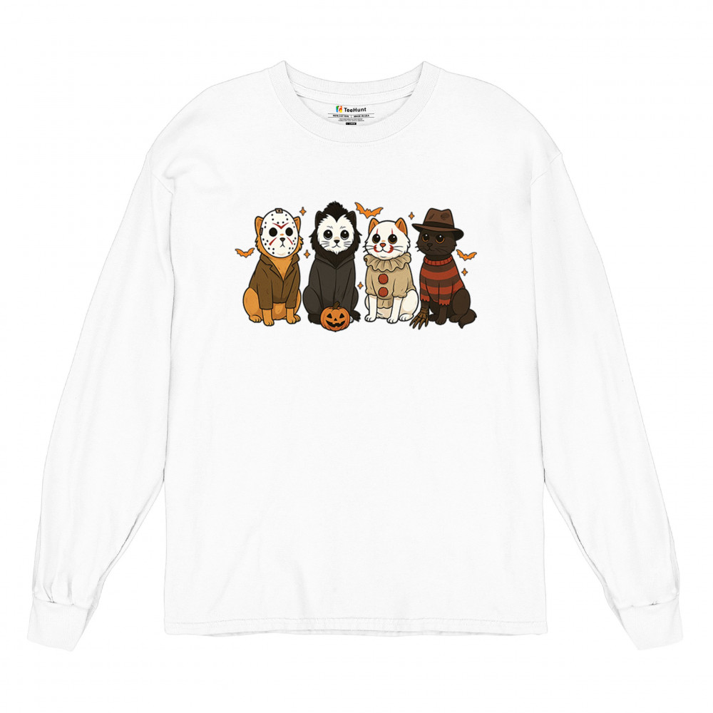 Get into the Halloween spirit with this Horror Cats Halloween design featuring spooky felines in creepy costumes. From Jack o Lantern details to Haunted House energy, it’s perfect for celebrating October 31 with festive style. A playful blend of Halloween vibes, autumn night chills, and witch-inspired magic, this design makes a great Halloween outfit for cat lovers and spooky fans alike.