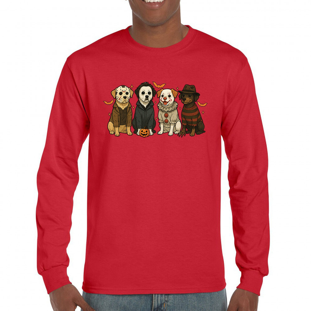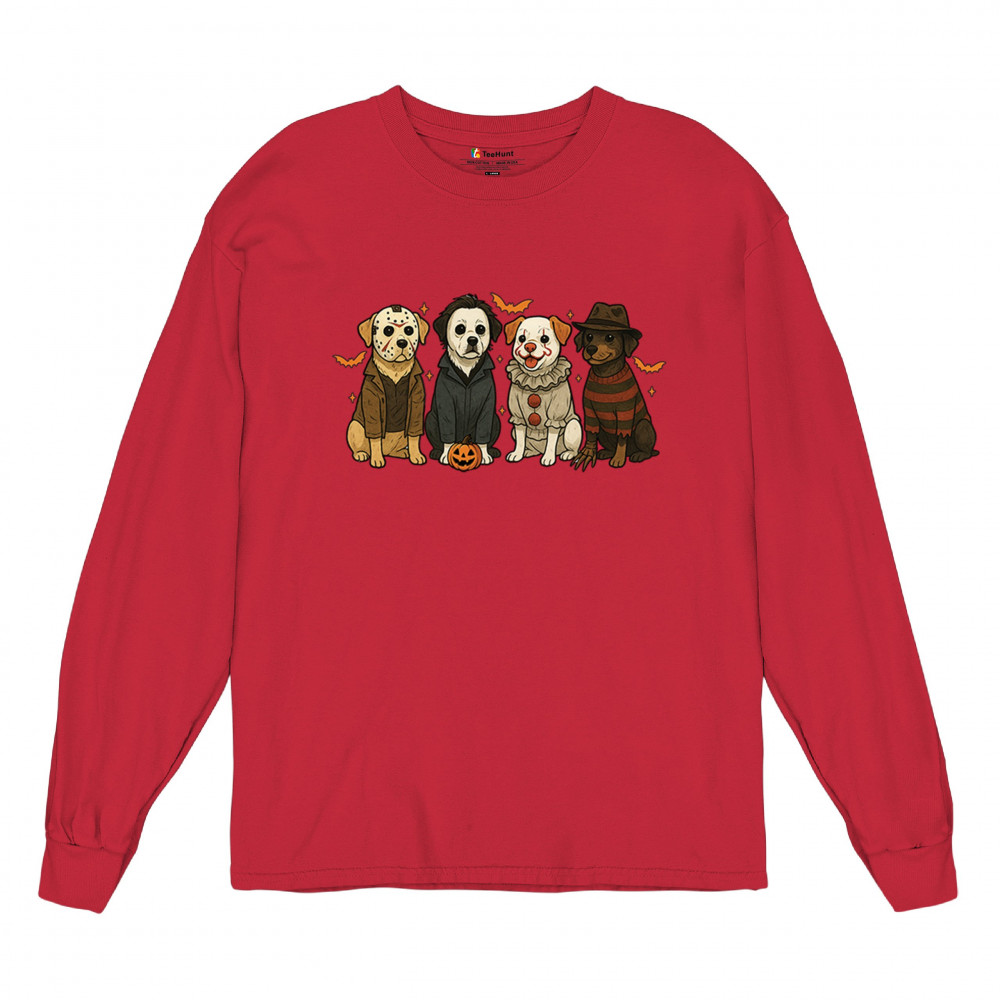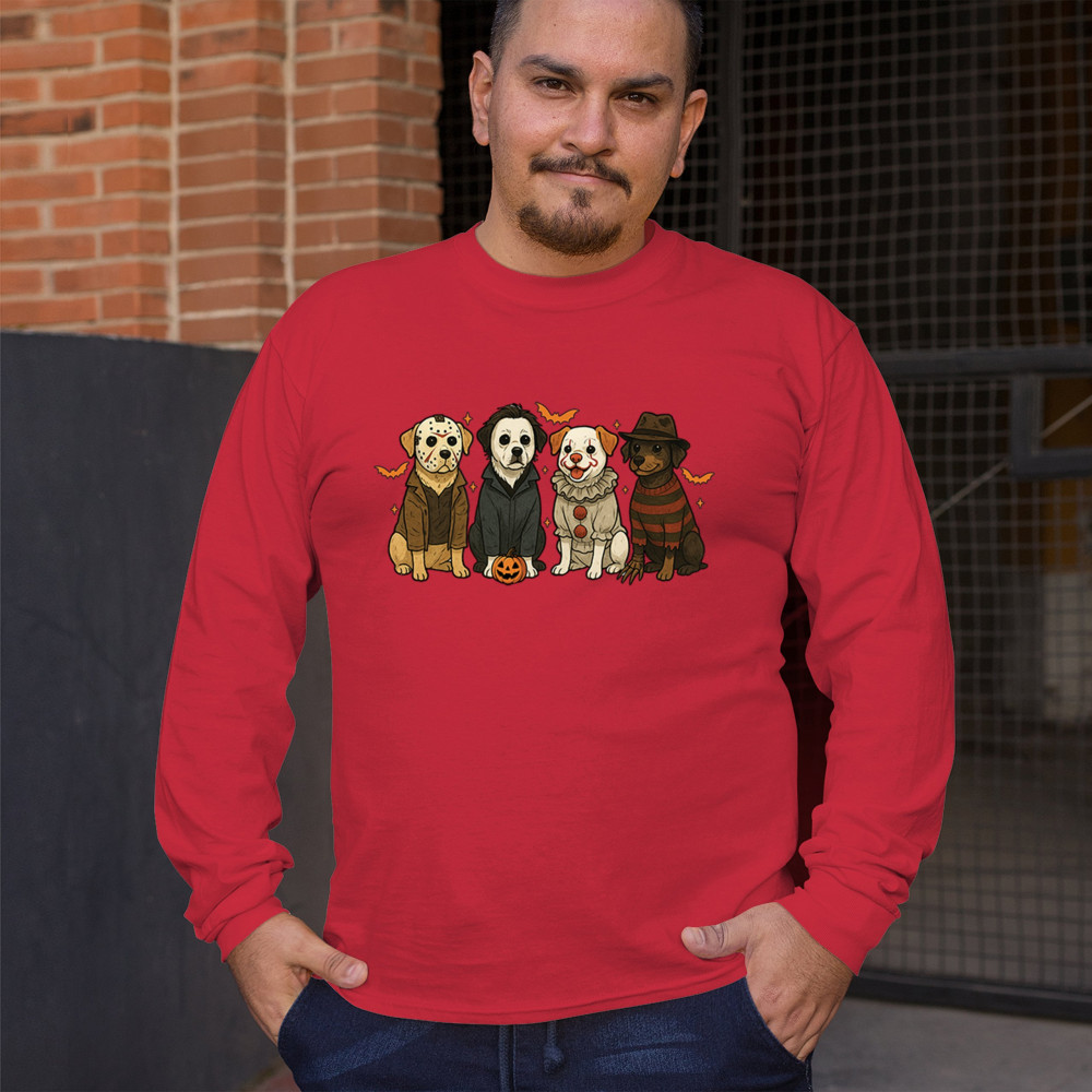 Celebrate Halloween with the Horror Dogs design featuring pups in creepy costumes inspired by spooky icons. A perfect pick for October 31 haunted house visits, autumn nights, or parties full of Halloween vibes. Whether you love dogs, witches, or pumpkin head fun, this festive design makes a playful addition to the spooky season.