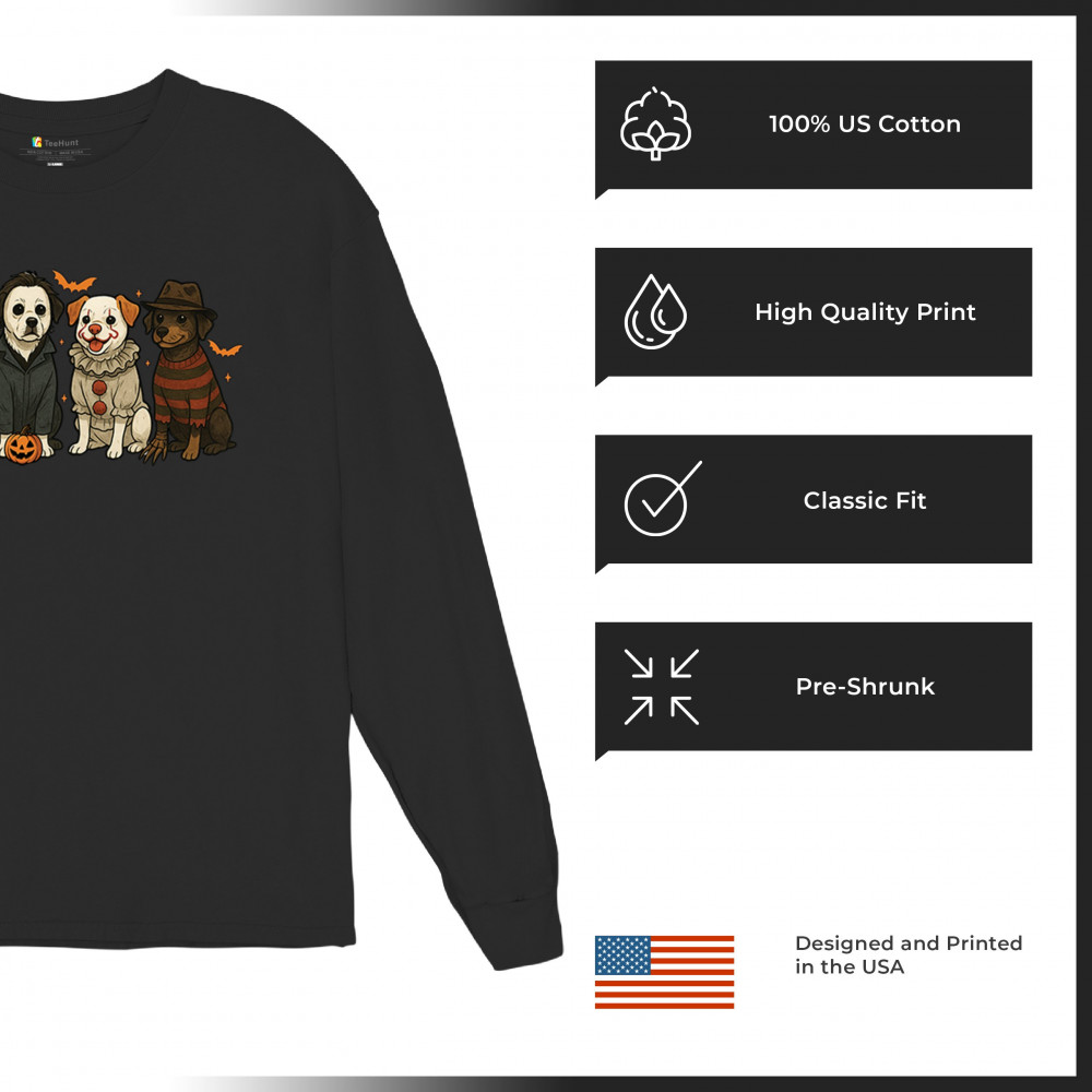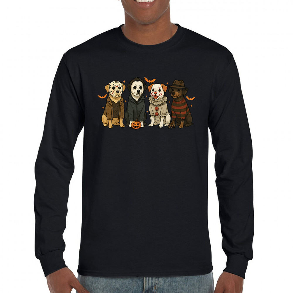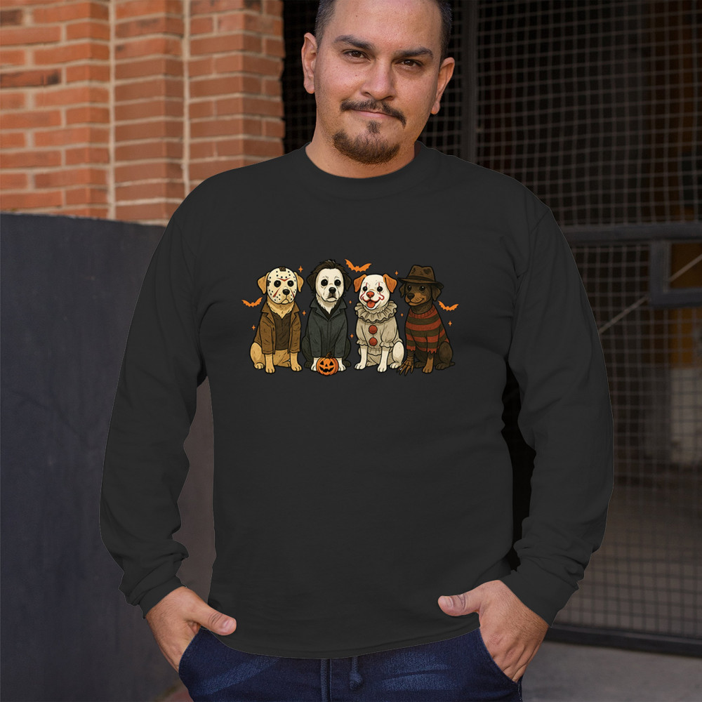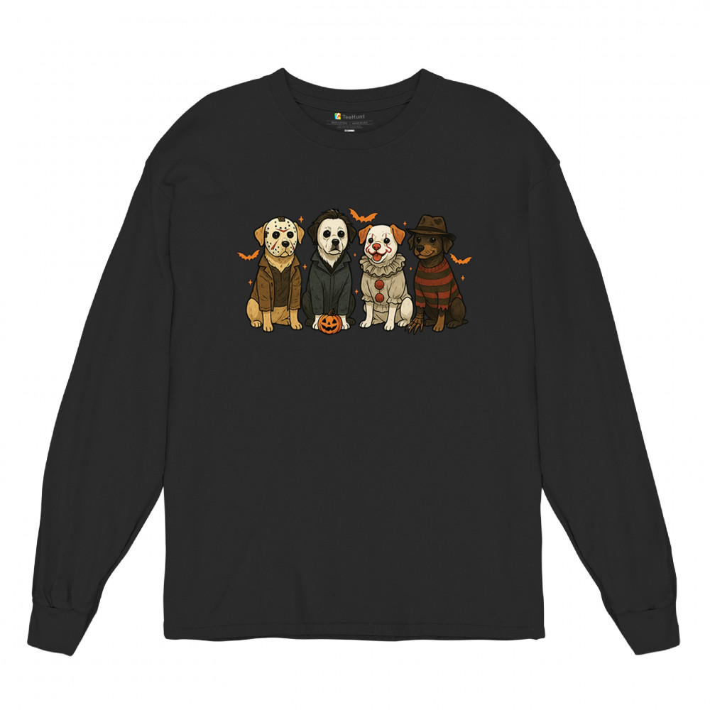 Celebrate Halloween with the Horror Dogs design featuring pups in creepy costumes inspired by spooky icons. A perfect pick for October 31 haunted house visits, autumn nights, or parties full of Halloween vibes. Whether you love dogs, witches, or pumpkin head fun, this festive design makes a playful addition to the spooky season.