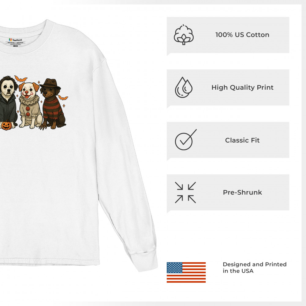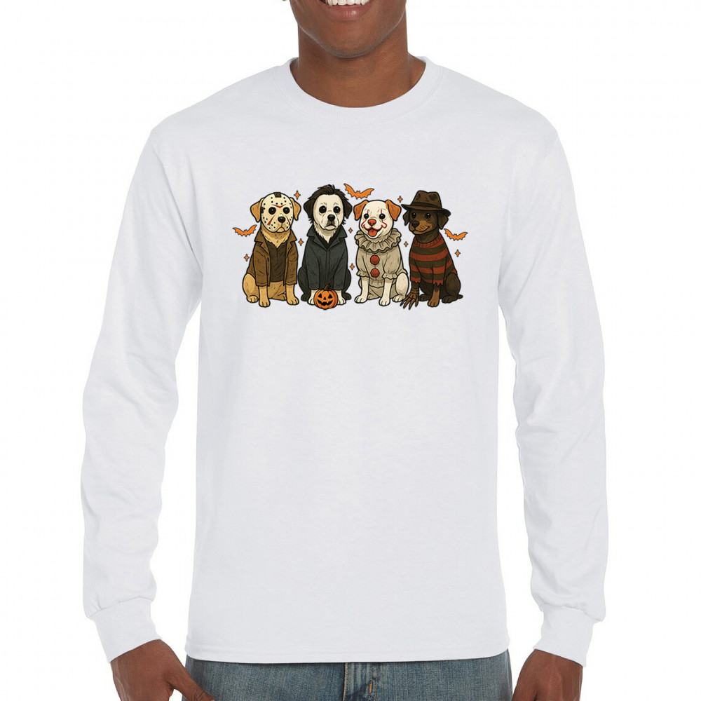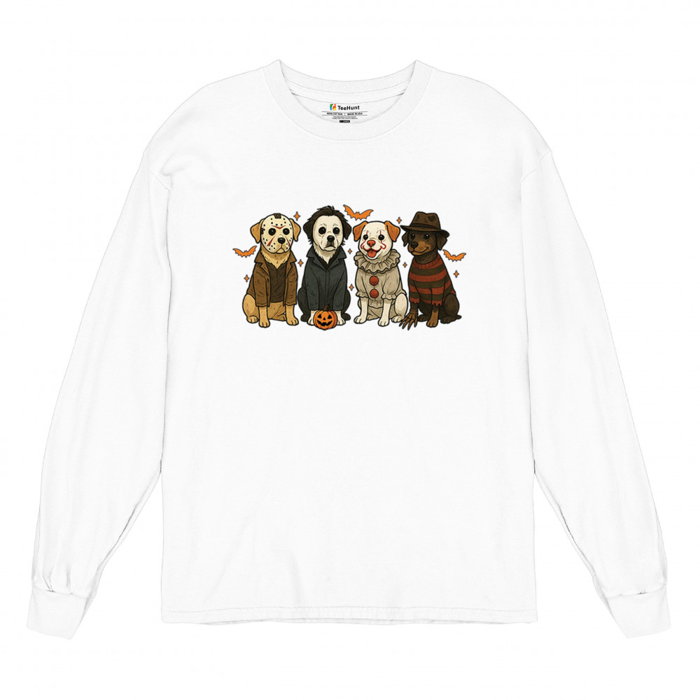 Celebrate Halloween with the Horror Dogs design featuring pups in creepy costumes inspired by spooky icons. A perfect pick for October 31 haunted house visits, autumn nights, or parties full of Halloween vibes. Whether you love dogs, witches, or pumpkin head fun, this festive design makes a playful addition to the spooky season.