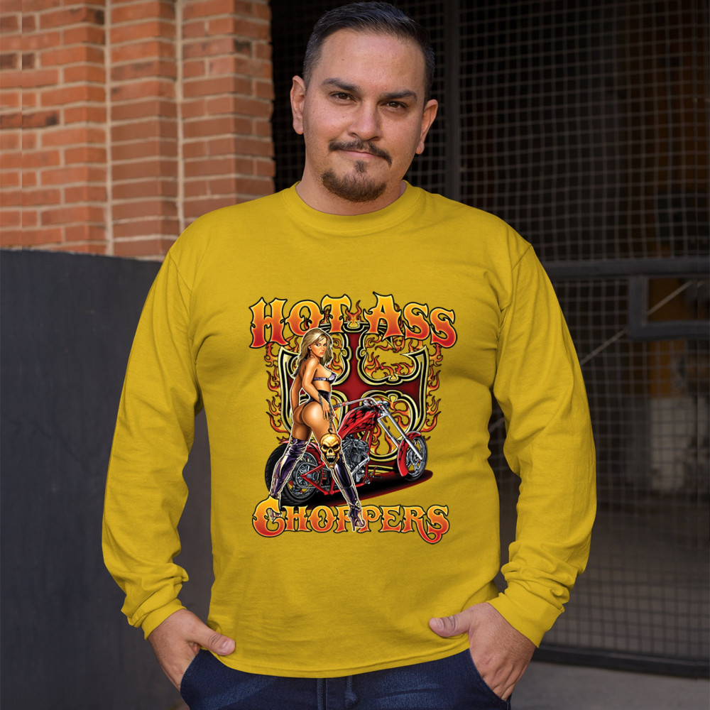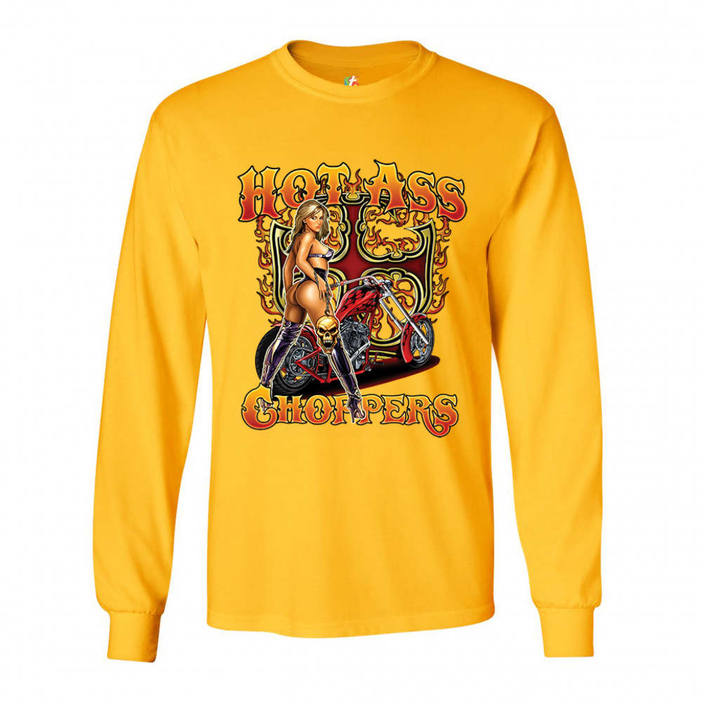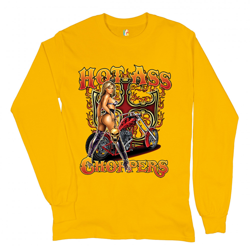 HOT ASS CHOPPERS long sleeve t-shirt born to be wild route 66 hot chick yellow