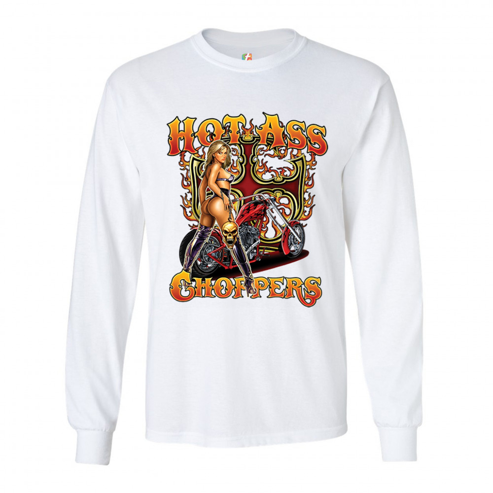 HOT ASS CHOPPERS long sleeve t-shirt born to be wild route 66 hot chick white