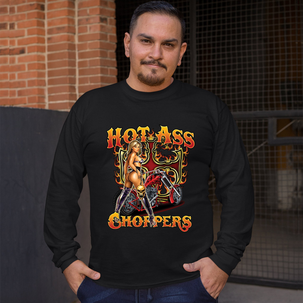 HOT ASS CHOPPERS long sleeve t-shirt born to be wild route 66 hot chick black