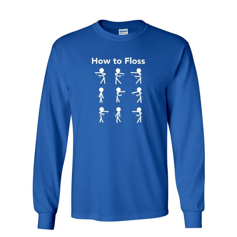 HOW TO FLOSS long sleeve t-shirt new dance backpack kid tutorial funny trend tee royal blue