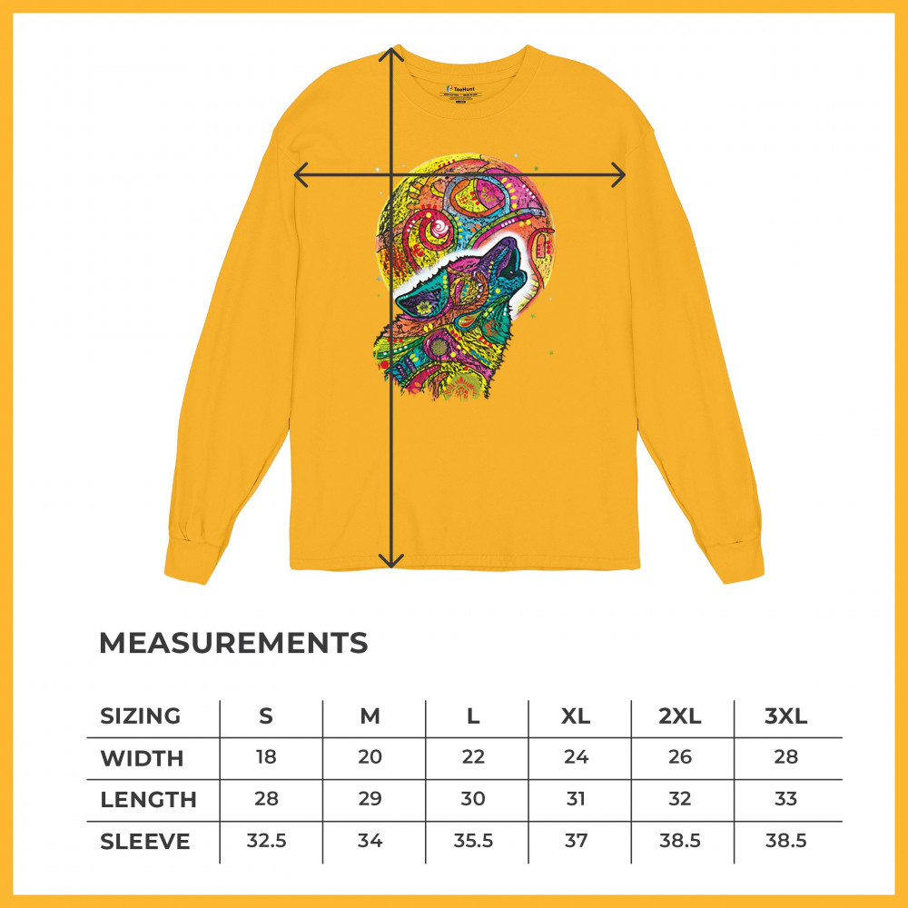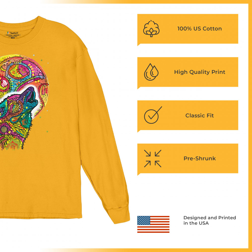HOWLING WOLF AND MOON long sleeve t-shirt dean russo colorful wild life yellow