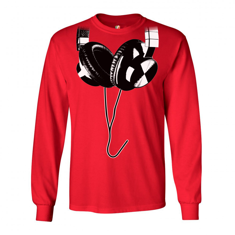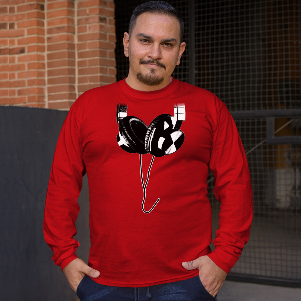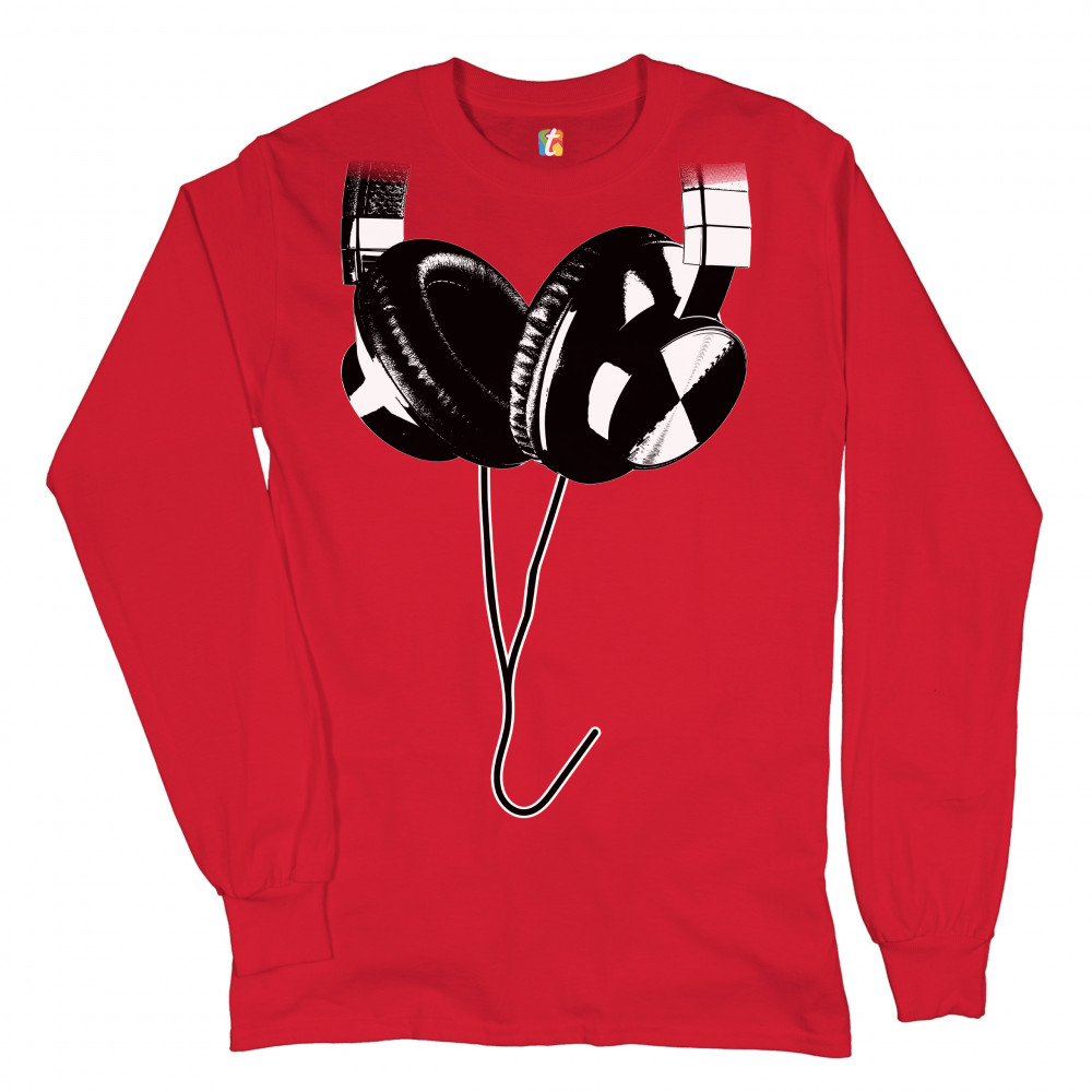 HUGE HANGING HEADPHONES long sleeve t-shirt dj music red