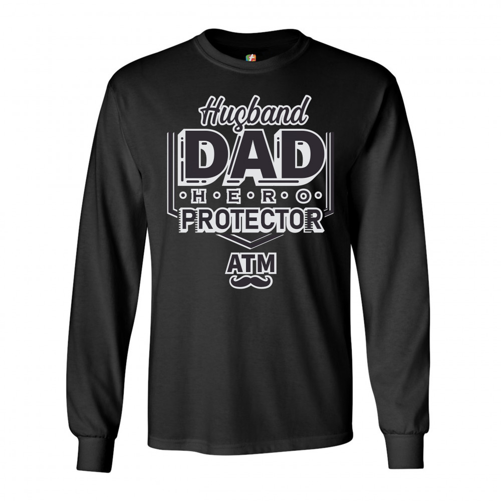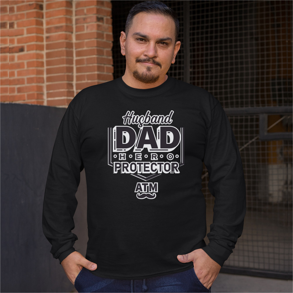 HUSBAND DAD PROTECTOR HERO ATM long sleeve t-shirt father's day papa daddy black