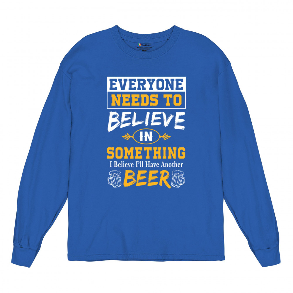 Add some humor to your wardrobe with our "Everyone Needs to Believe in Something, I Believe I'll Have Another Beer" design. Featuring a witty slogan and beer-themed graphics, this design is perfect for casual outings, beer festivals, and social gatherings. Ideal for beer lovers and anyone who enjoys a good laugh, it makes a fantastic gift for friends and family. Celebrate your love for beer and good times with this fun and playful design!