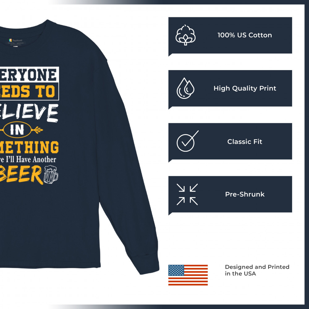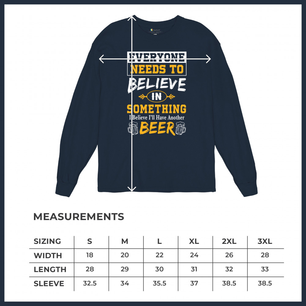 Add some humor to your wardrobe with our "Everyone Needs to Believe in Something, I Believe I'll Have Another Beer" design. Featuring a witty slogan and beer-themed graphics, this design is perfect for casual outings, beer festivals, and social gatherings. Ideal for beer lovers and anyone who enjoys a good laugh, it makes a fantastic gift for friends and family. Celebrate your love for beer and good times with this fun and playful design!