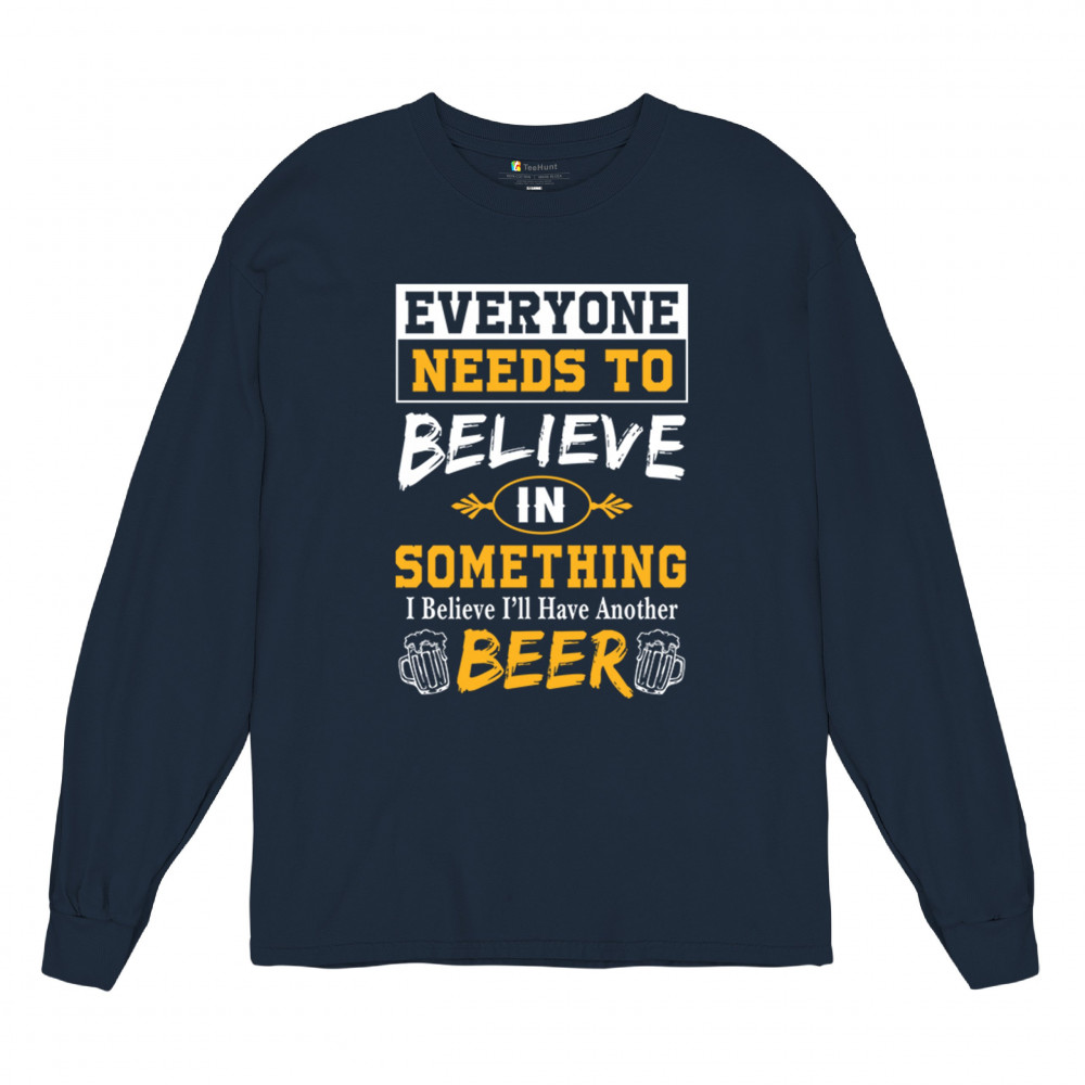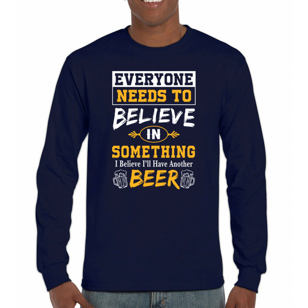 Celebrate your love for beer with the witty "Everyone Needs to Believe in Something, I Believe I'll Have Another Beer" design. Perfect for beer lovers and casual outings.