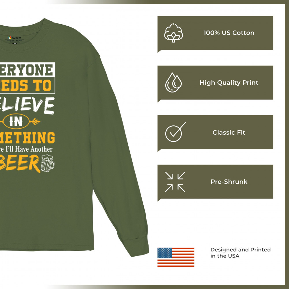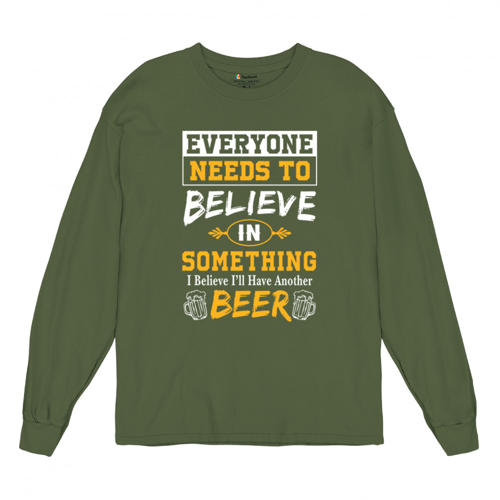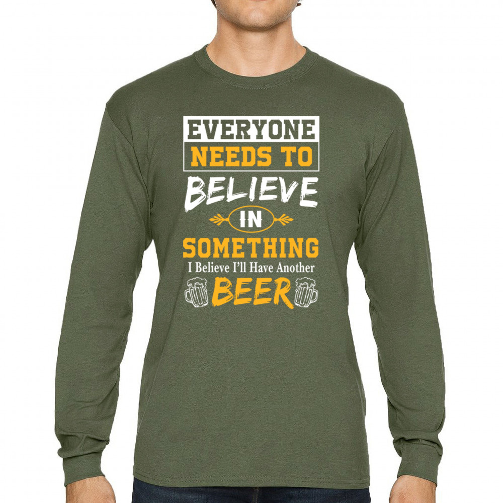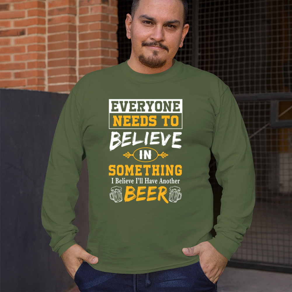 Celebrate your love for beer with the witty "Everyone Needs to Believe in Something, I Believe I'll Have Another Beer" design. Perfect for beer lovers and casual outings.