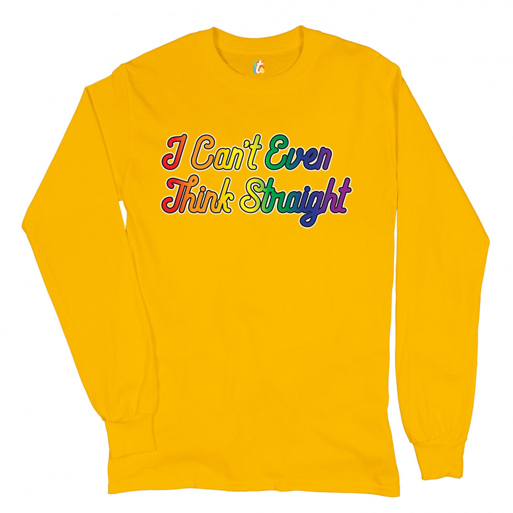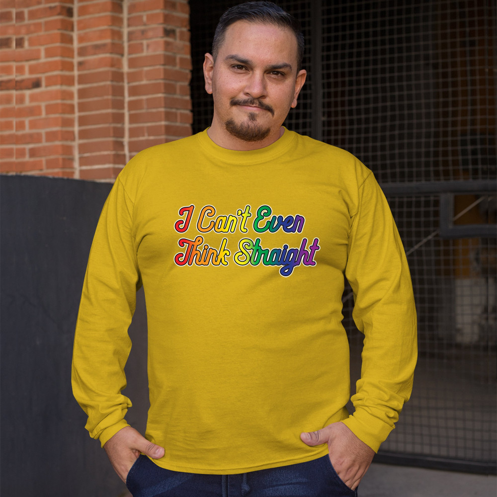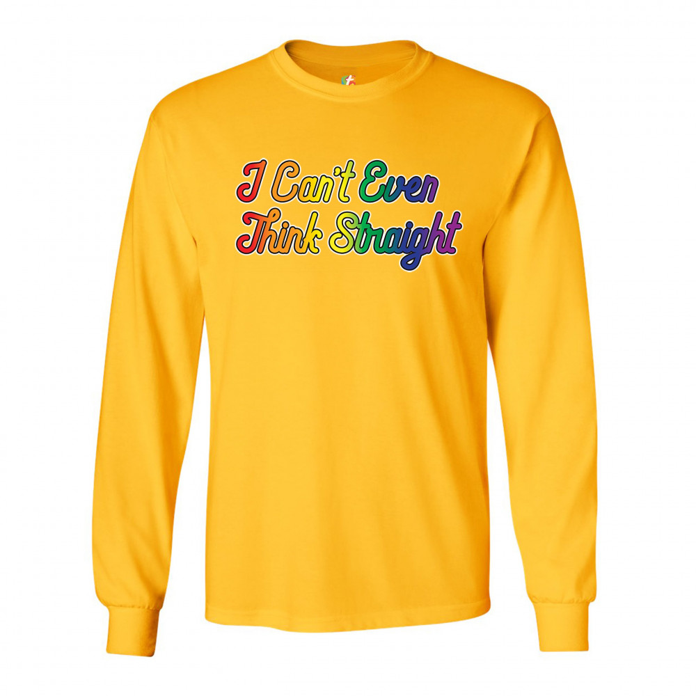 I CAN'T EVEN THINK STRAIGHT long sleeve t-shirt lgbt rainbow gay pride funny yellow