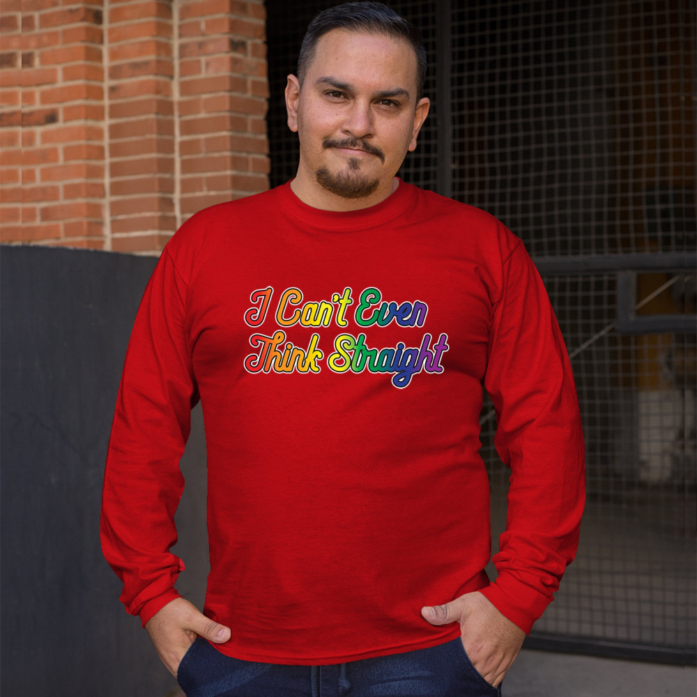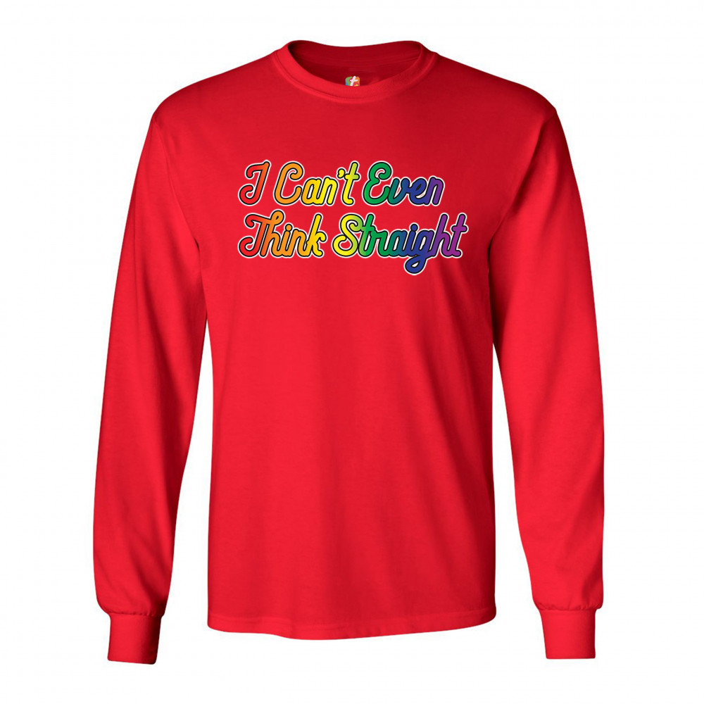 I CAN'T EVEN THINK STRAIGHT long sleeve t-shirt lgbt rainbow gay pride funny red