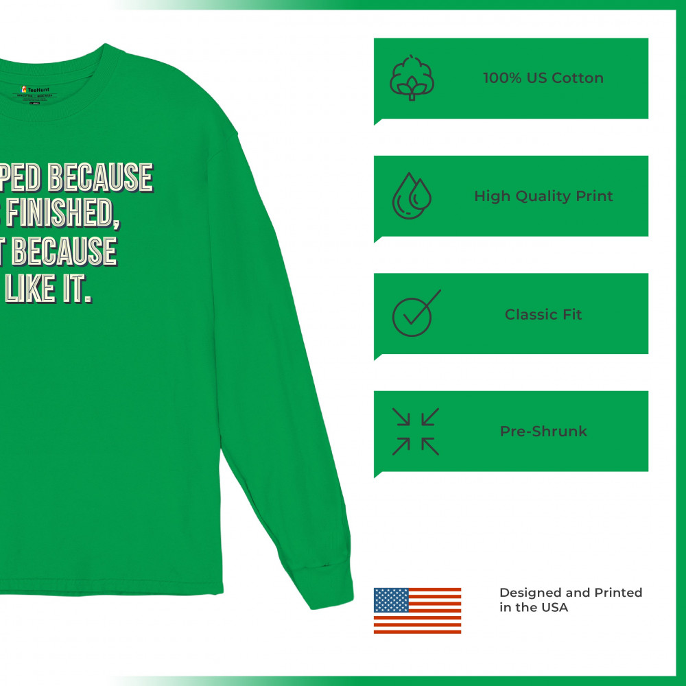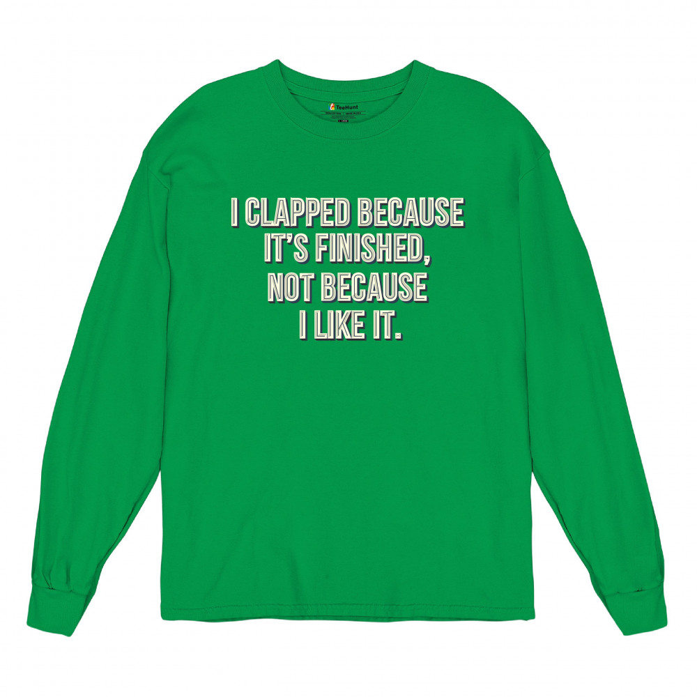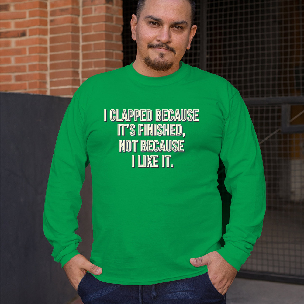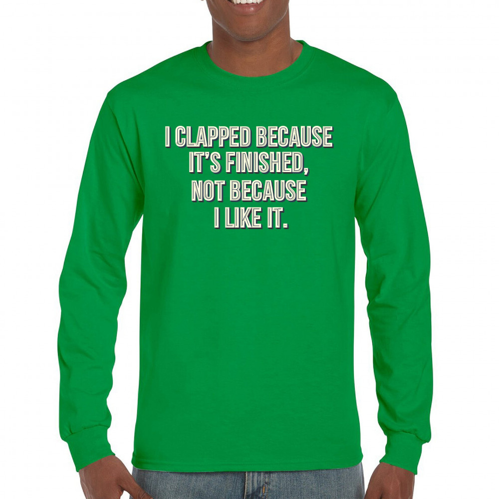 I CLAPPED BECAUSE IT'S FINISHED NOT BECAUSE I LIKE IT long sleeve t-shirt funny green