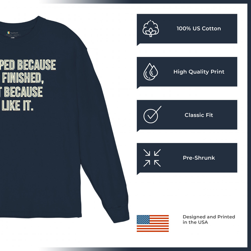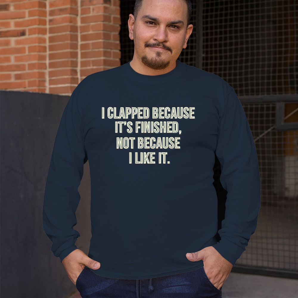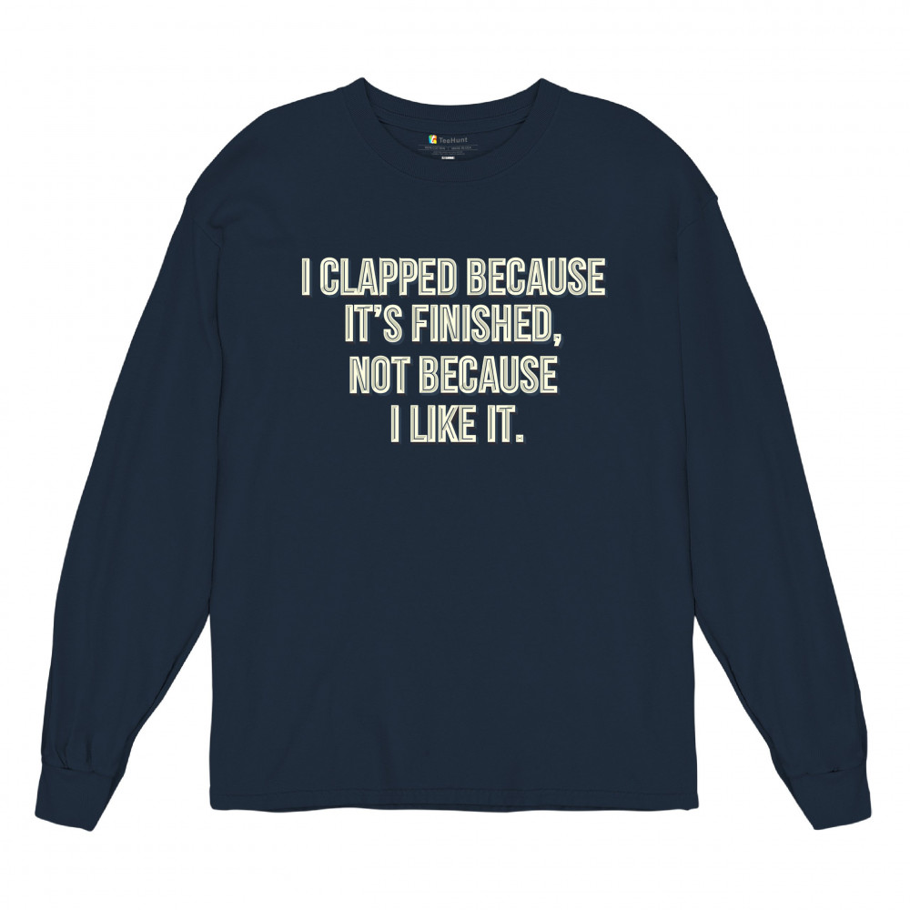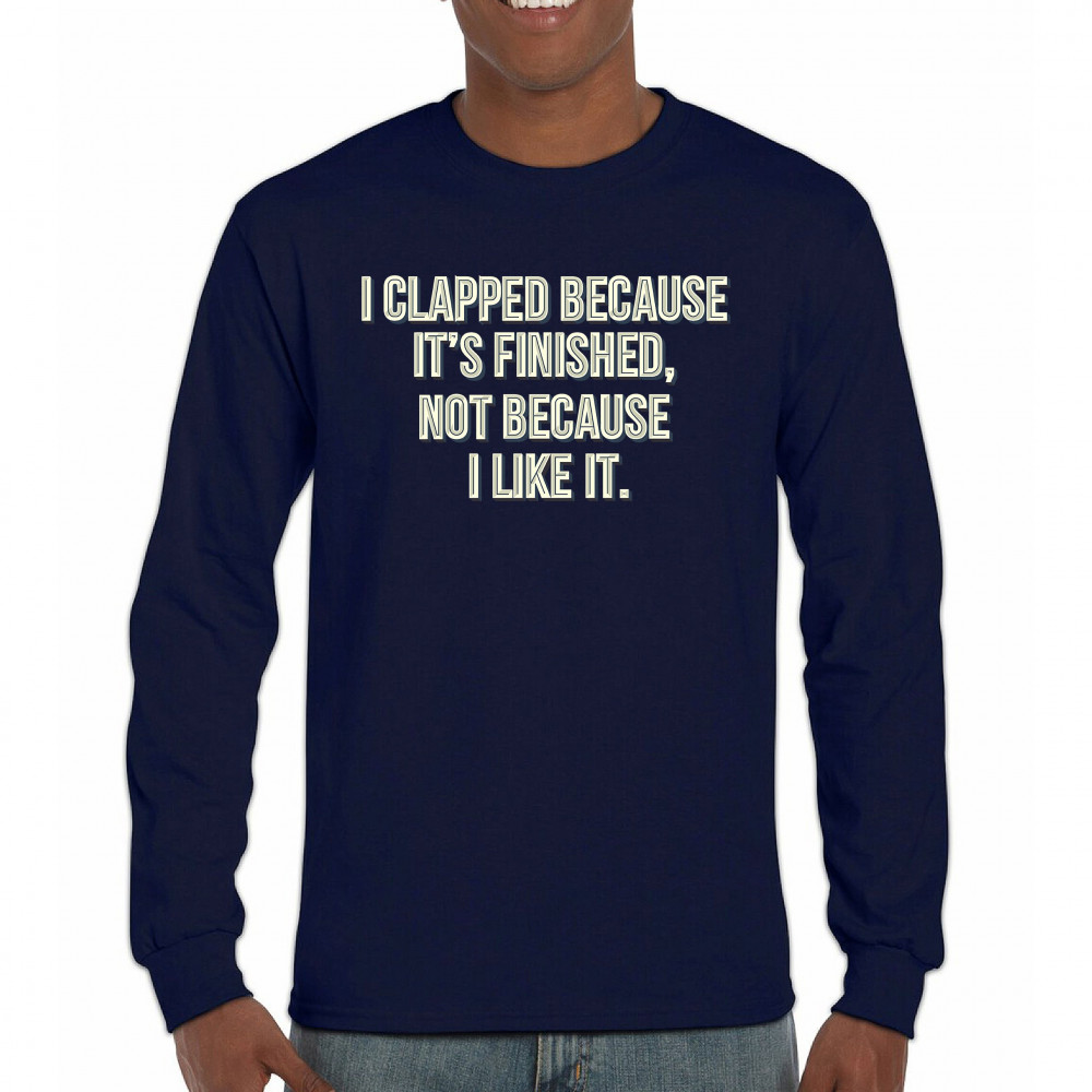 I CLAPPED BECAUSE IT'S FINISHED NOT BECAUSE I LIKE IT long sleeve t-shirt funny navy blue