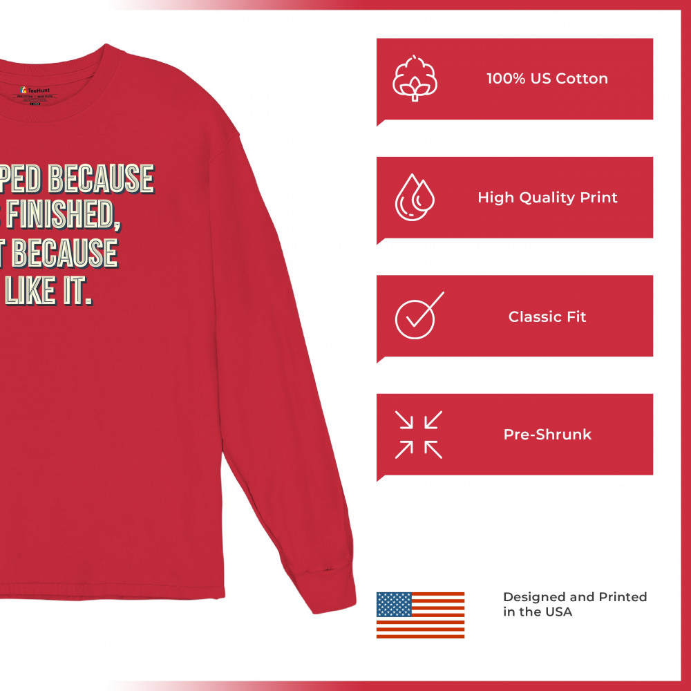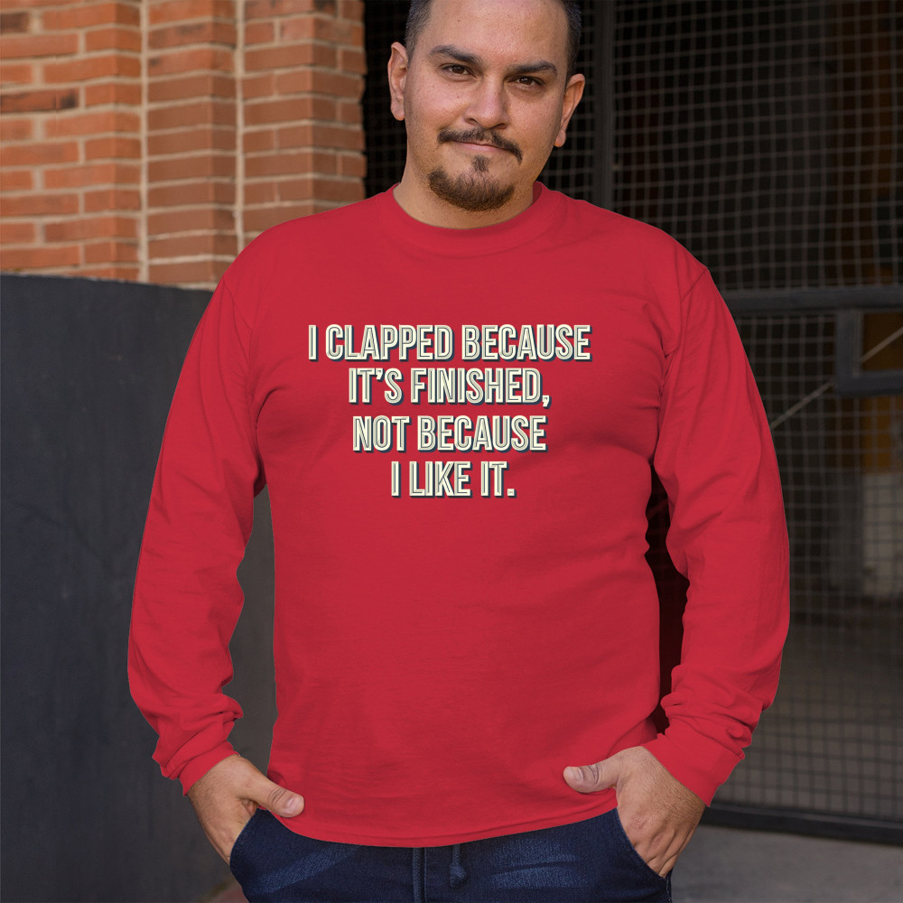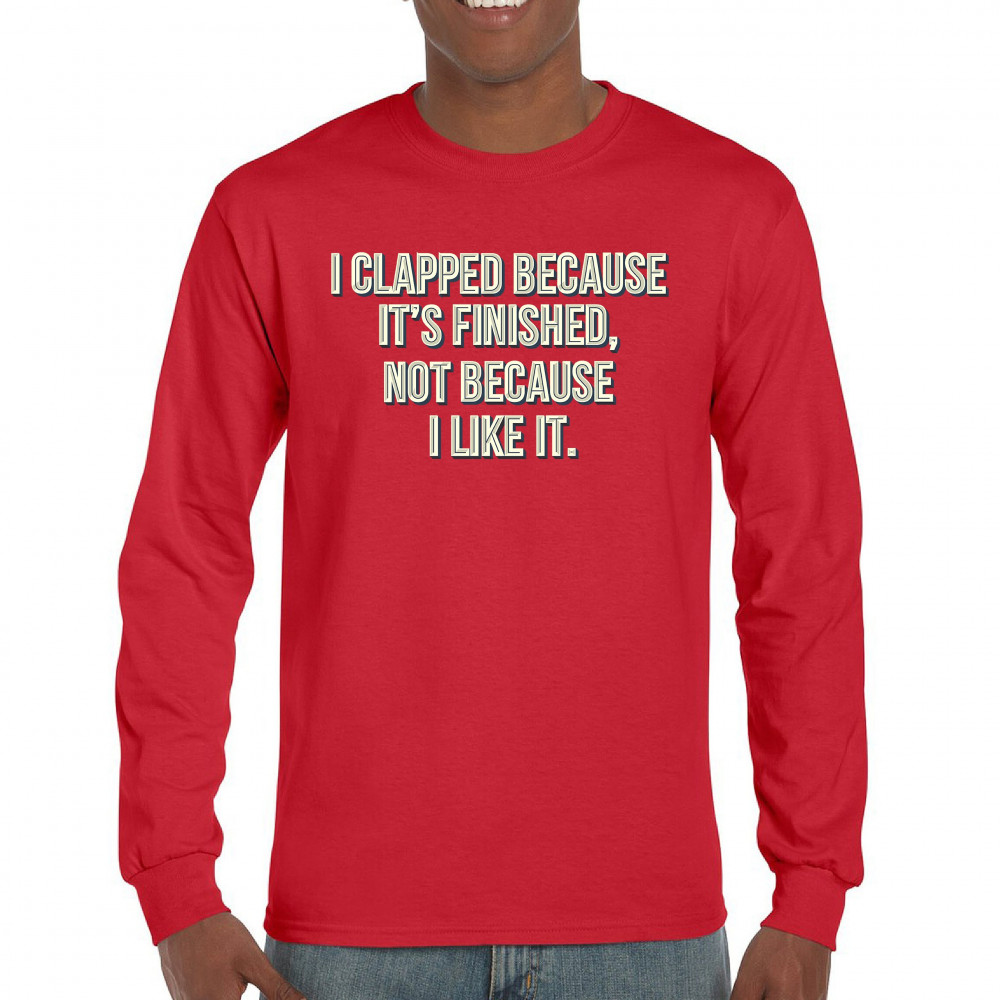 I CLAPPED BECAUSE IT'S FINISHED NOT BECAUSE I LIKE IT long sleeve t-shirt funny red
