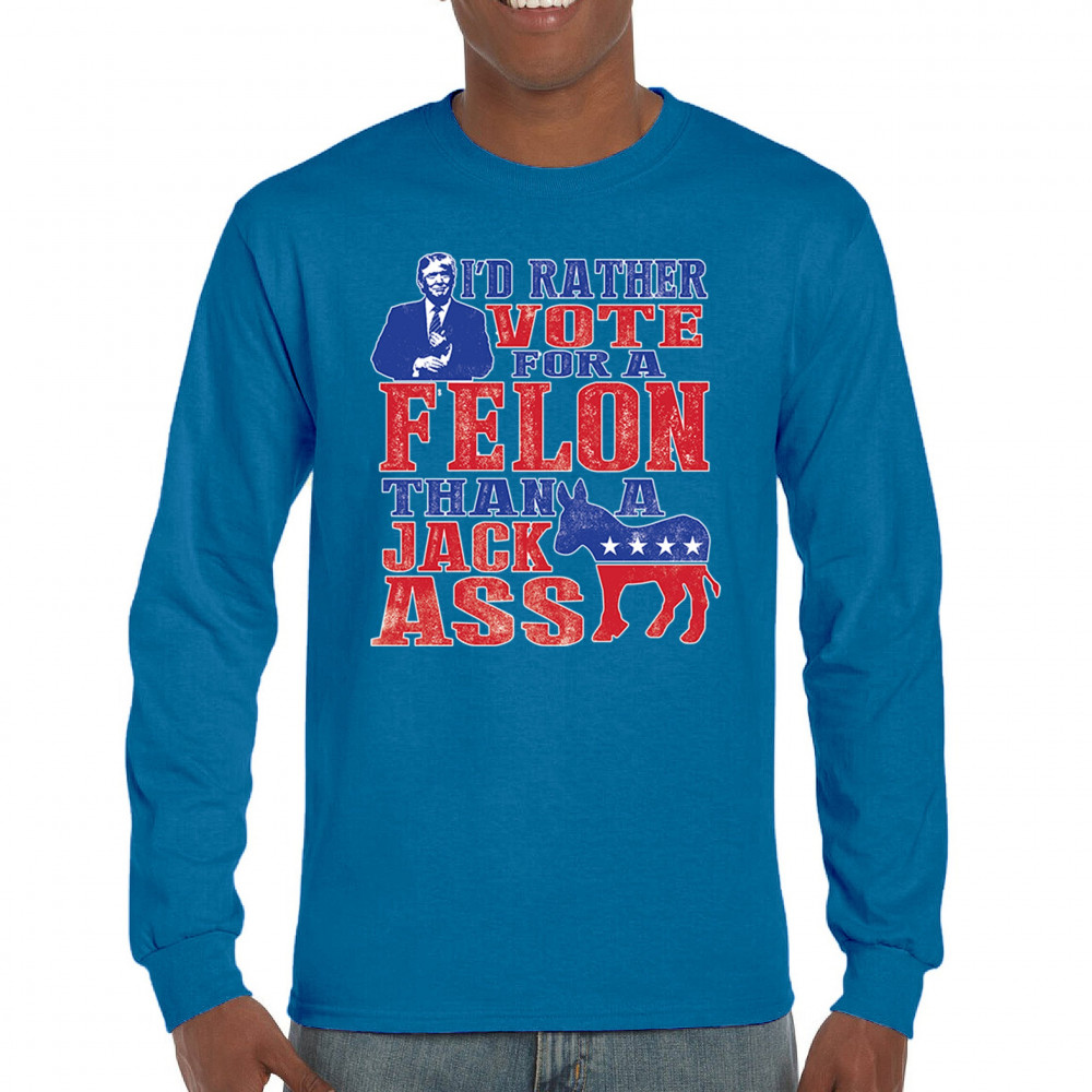 Boldly express your support with the "I'd Rather Vote For A Felon Than A Jackass" design. Perfect for rallies, it showcases loyalty to Trump and JD Vance.